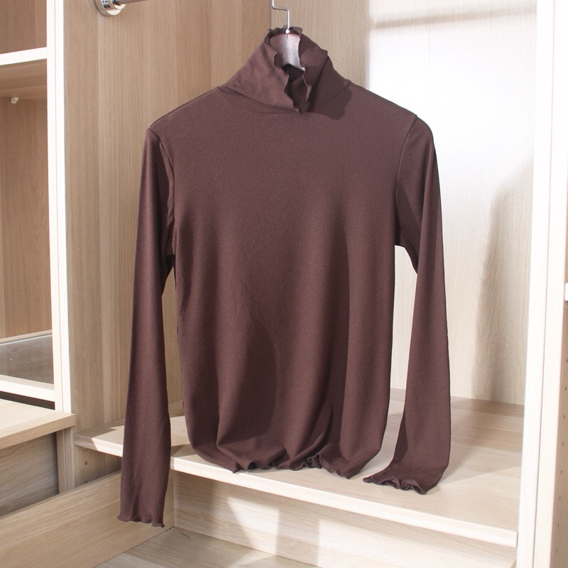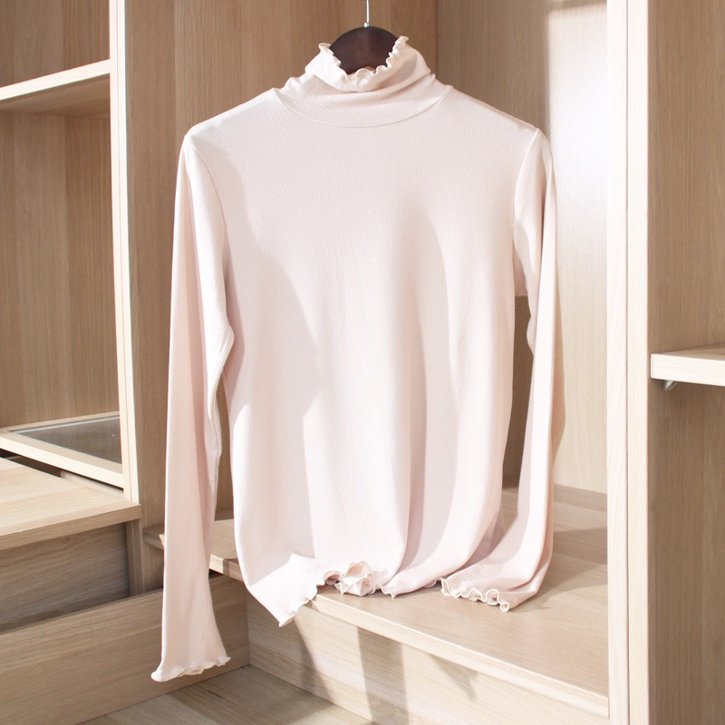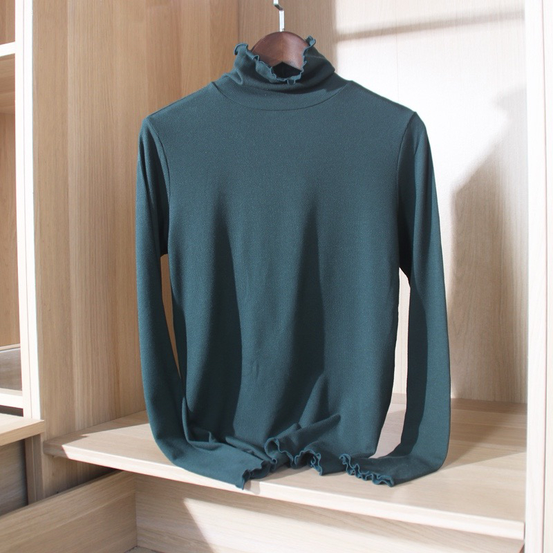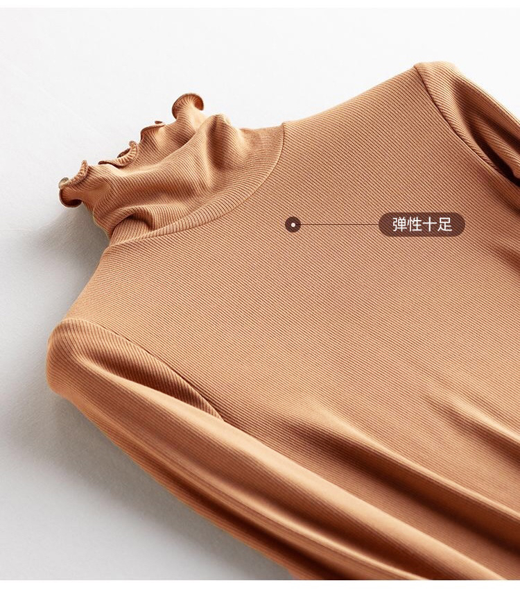 面料:德绒,德国拜耳发热原料,柔软有垂感,轻盈暖和,冬天打底不臃肿,设计简约,全新条纹荷叶边设计