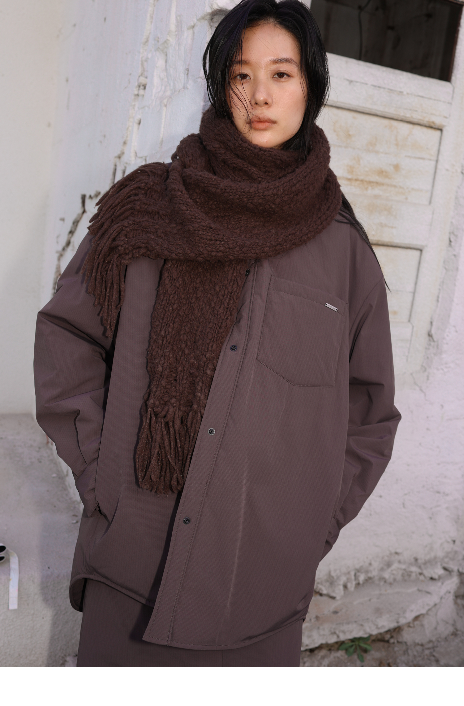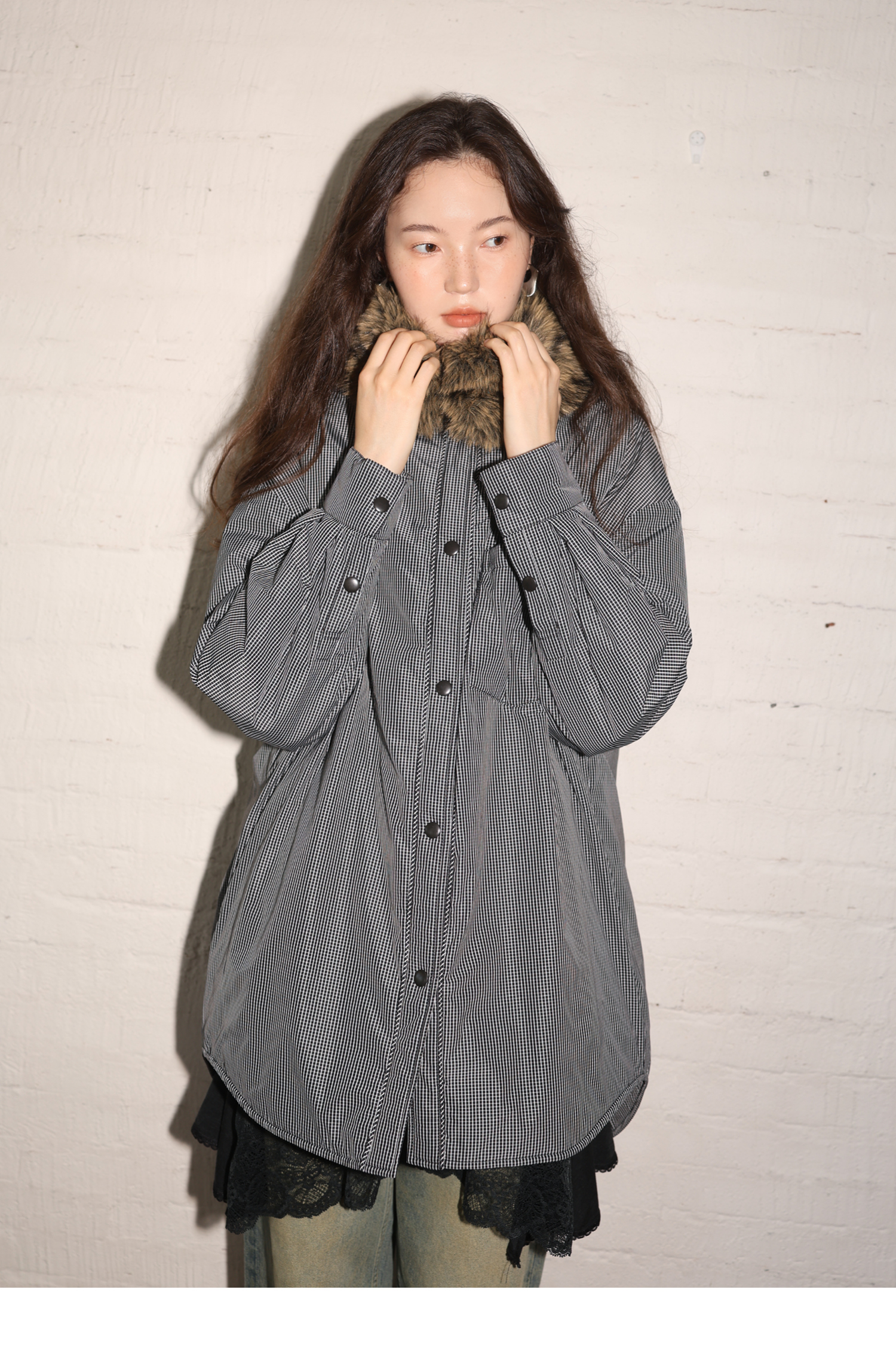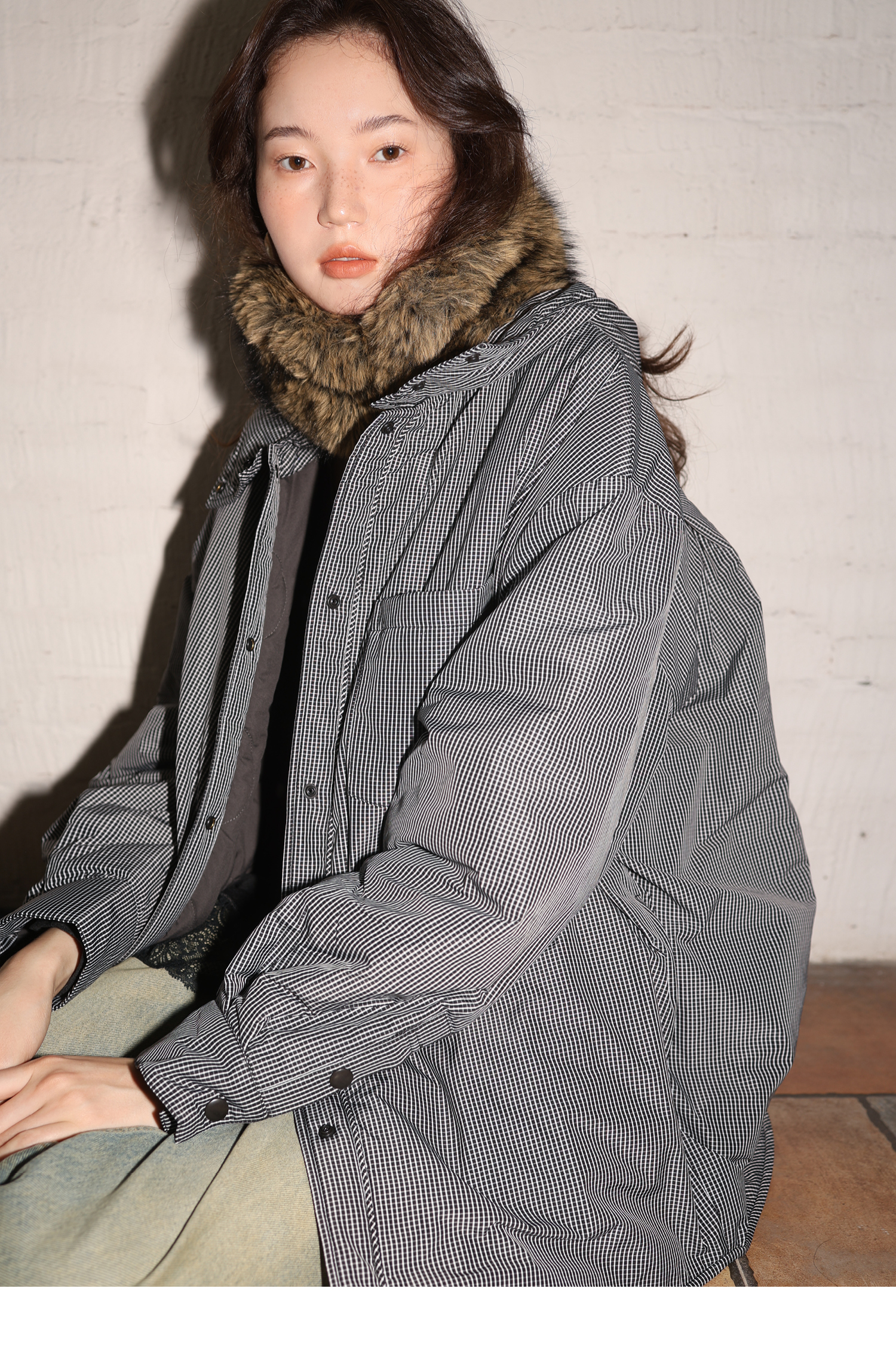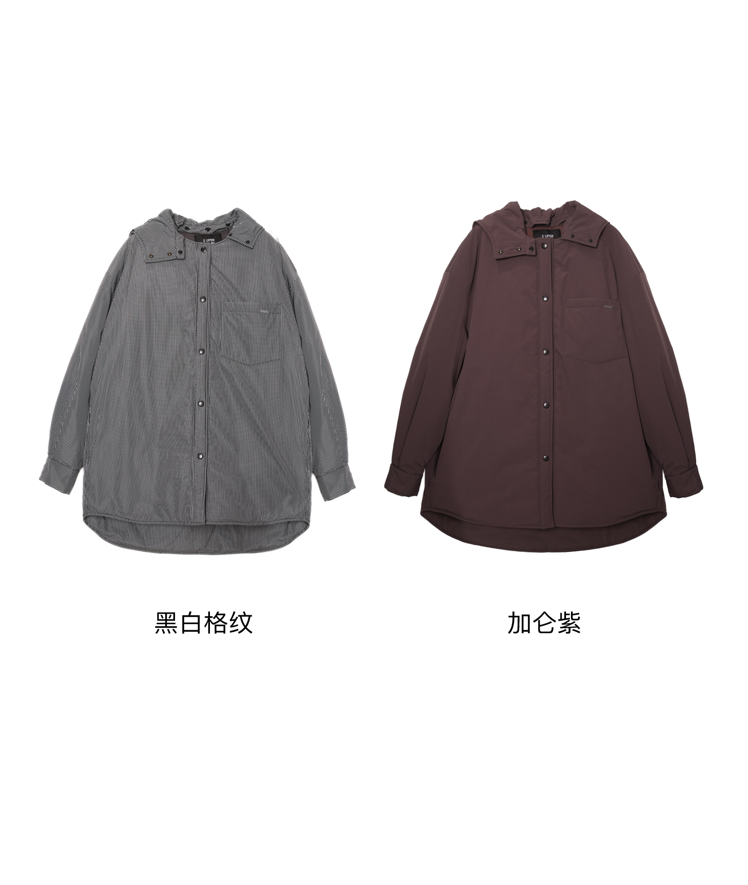 素舶 发热功能性棉锁温可拆卸帽子小格纹休闲宽松棉服外套