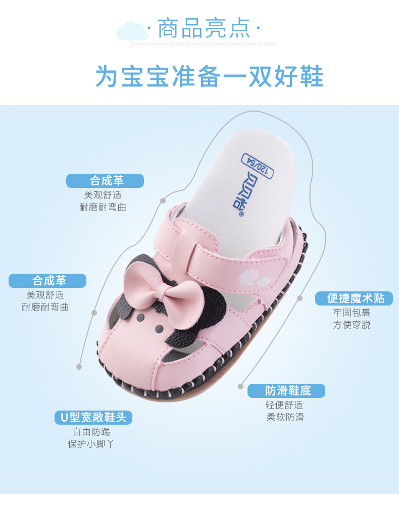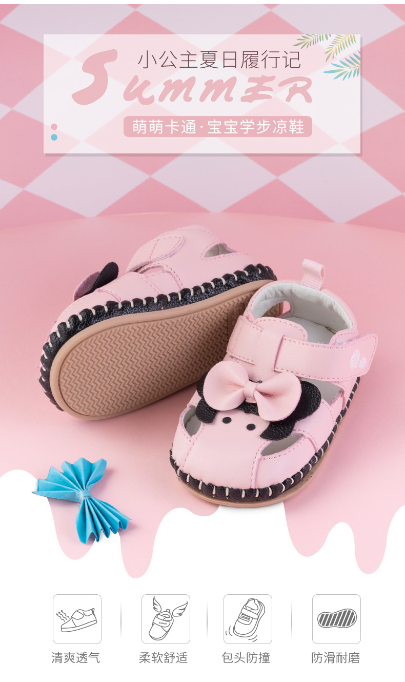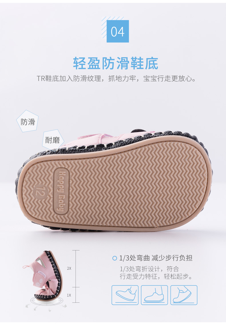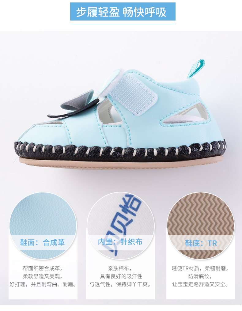 贝贝怡女童夏季透气软底凉鞋宝宝小公主学步鞋婴儿0一1岁机能鞋子192X108