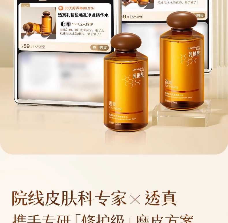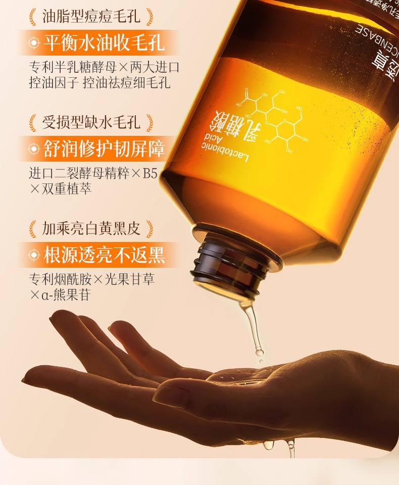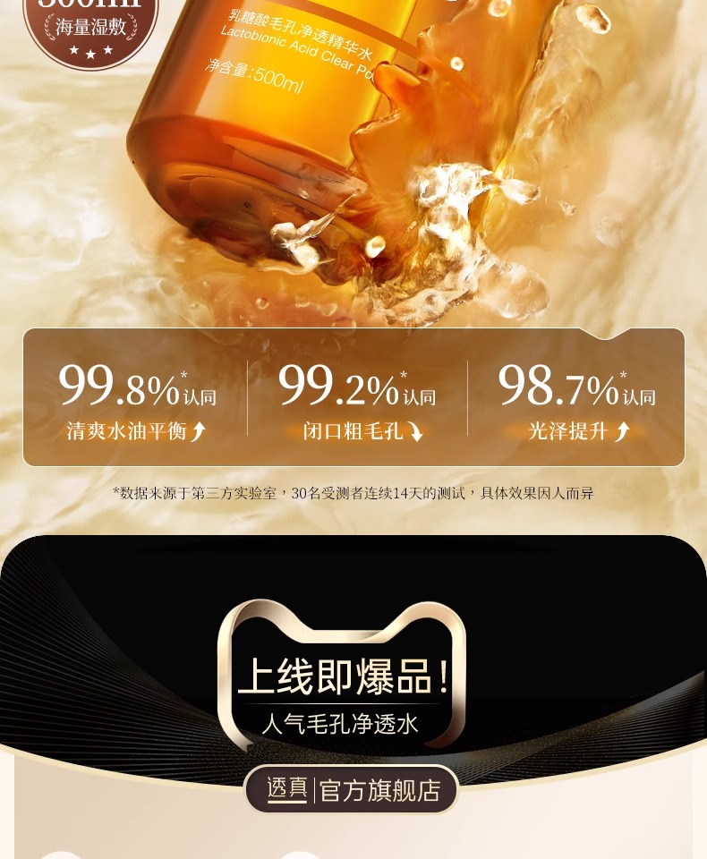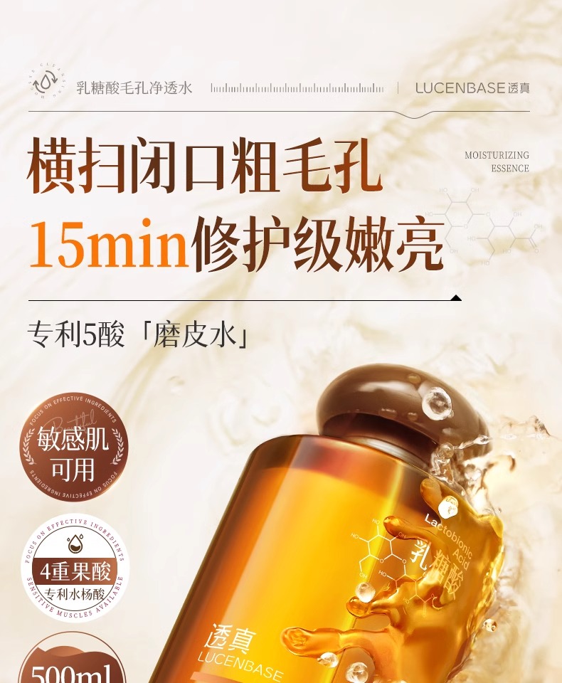 【猛缩粗毛孔 提亮·控油·平闭口】乳糖酸毛孔净透水500ml#乳糖酸收缩毛孔去闭口湿敷水去黄提亮补水控油保湿爽肤水果酸精华