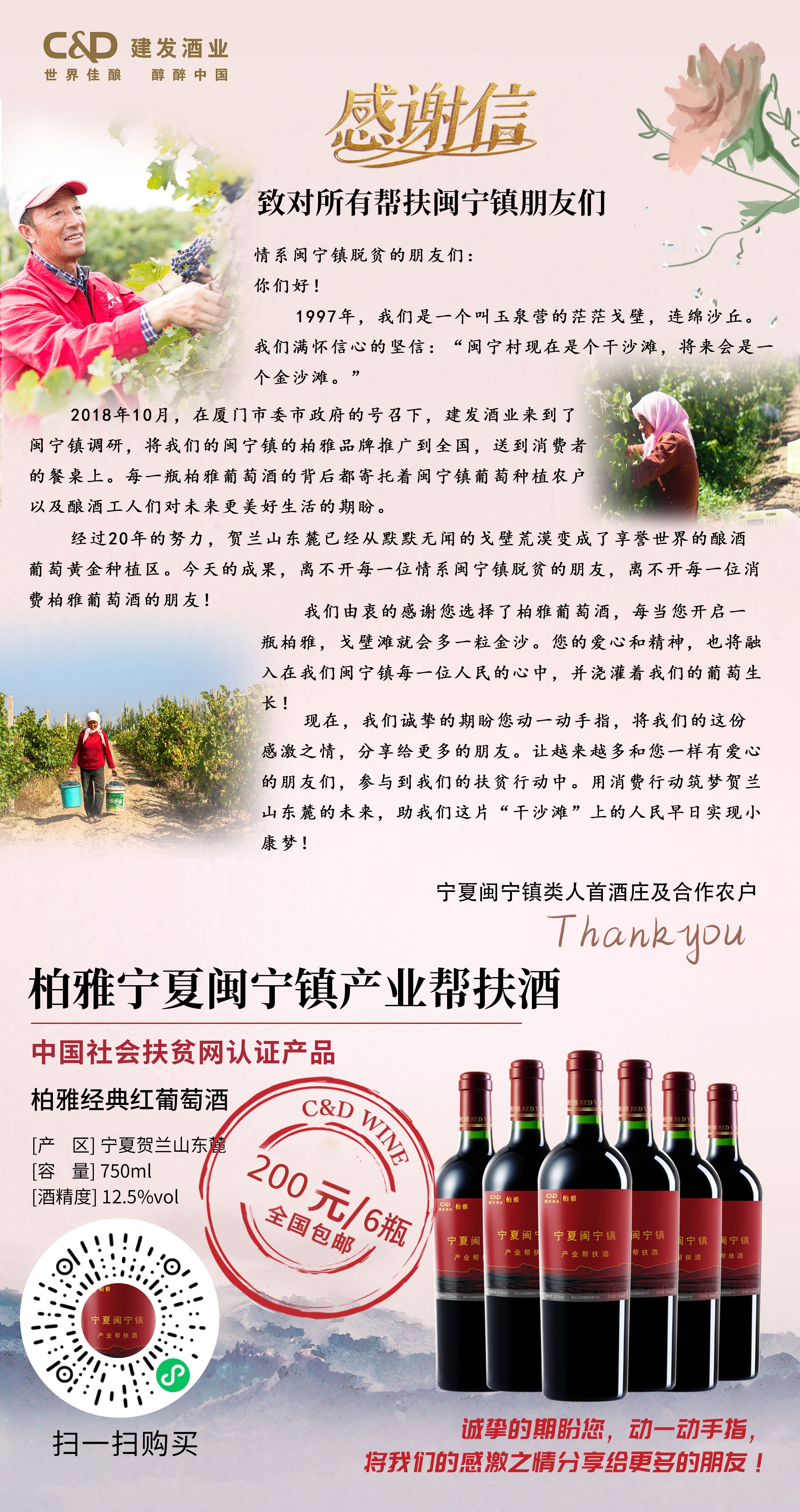 【宁夏闽宁镇帮扶酒】柏雅经典红葡萄酒750ml*6【全国包邮】