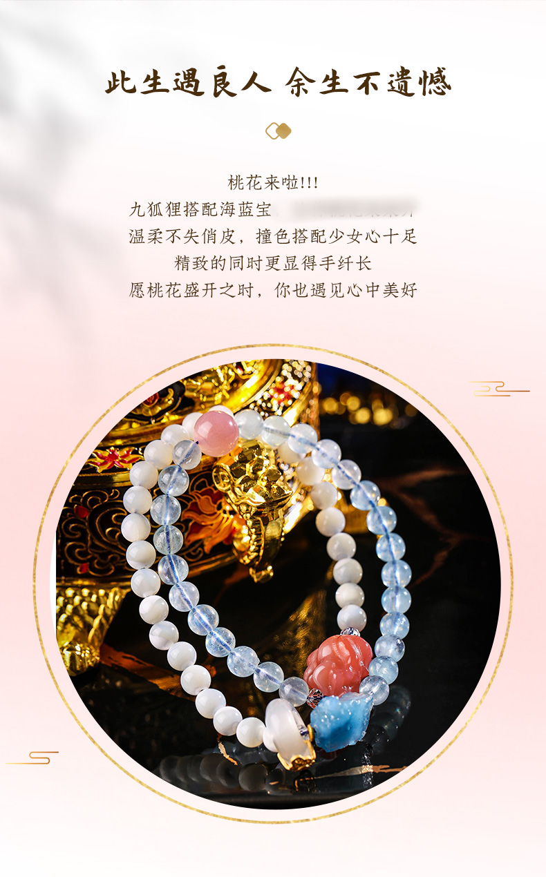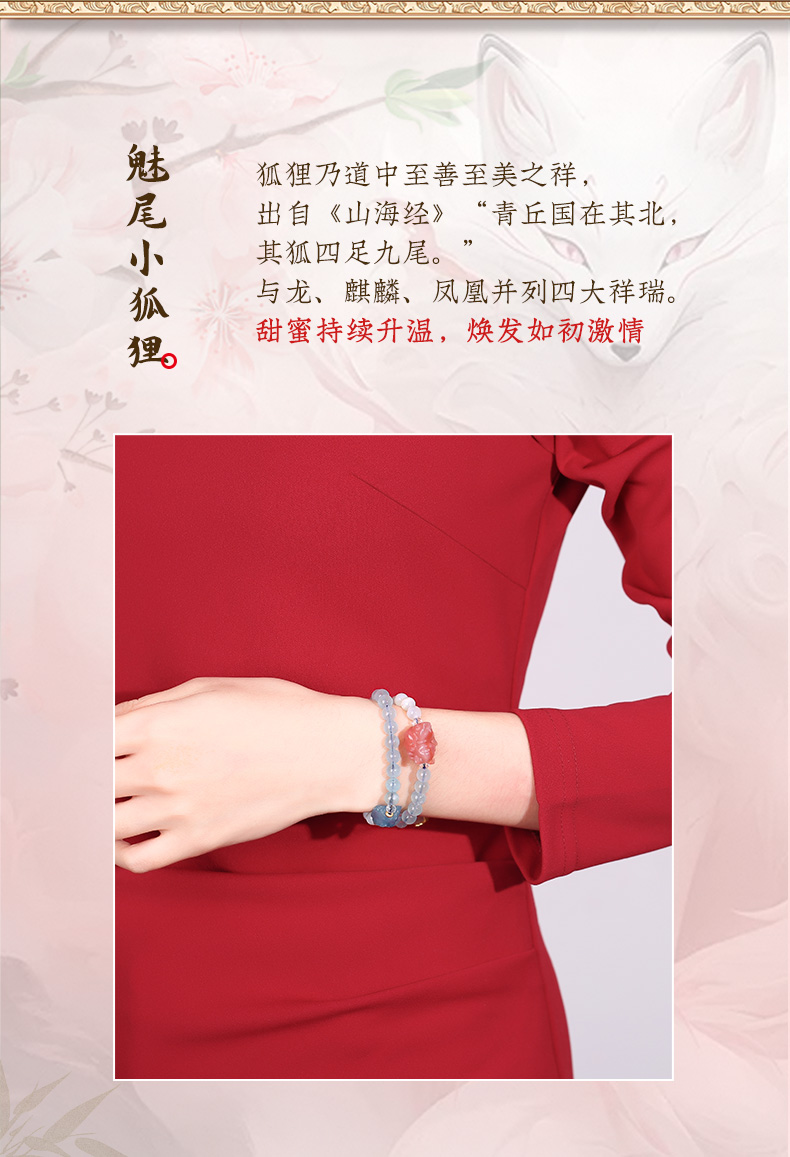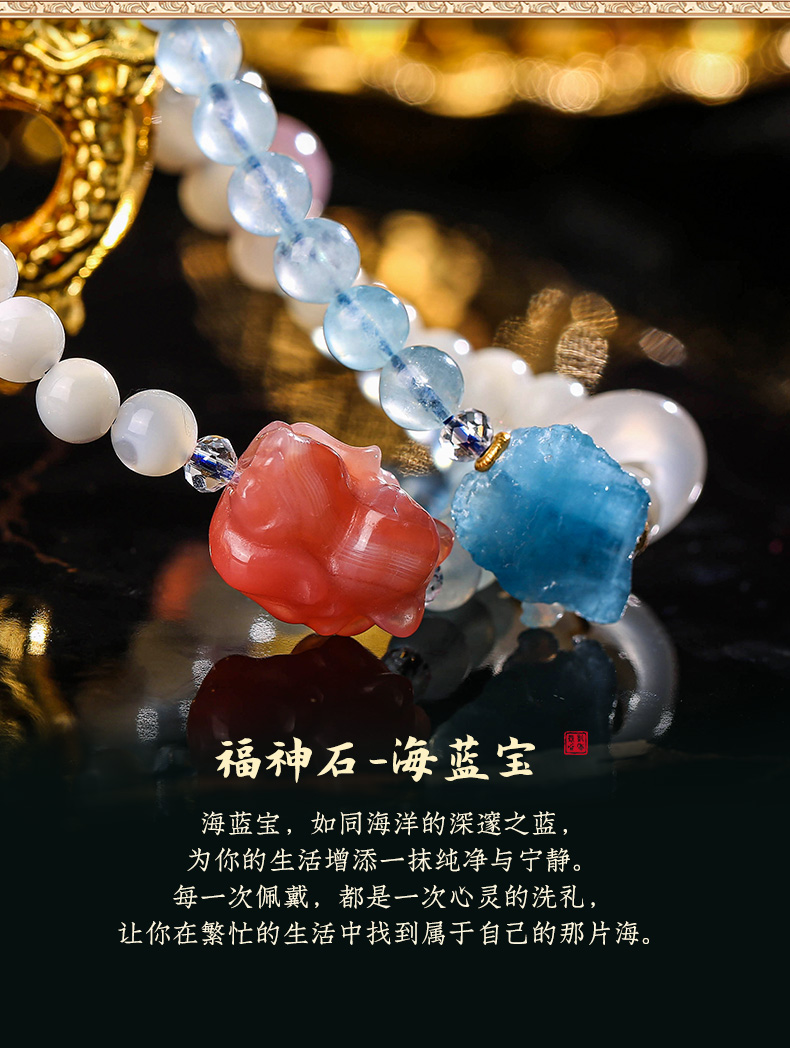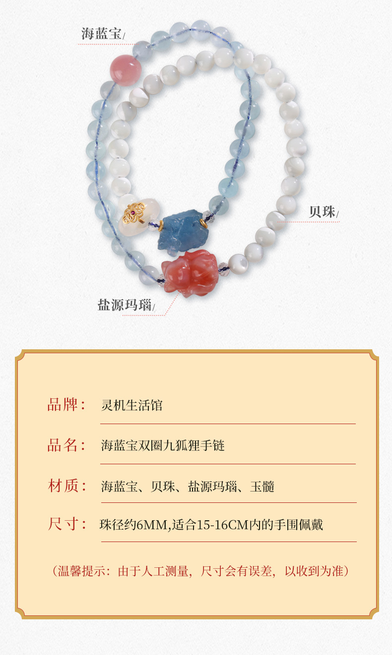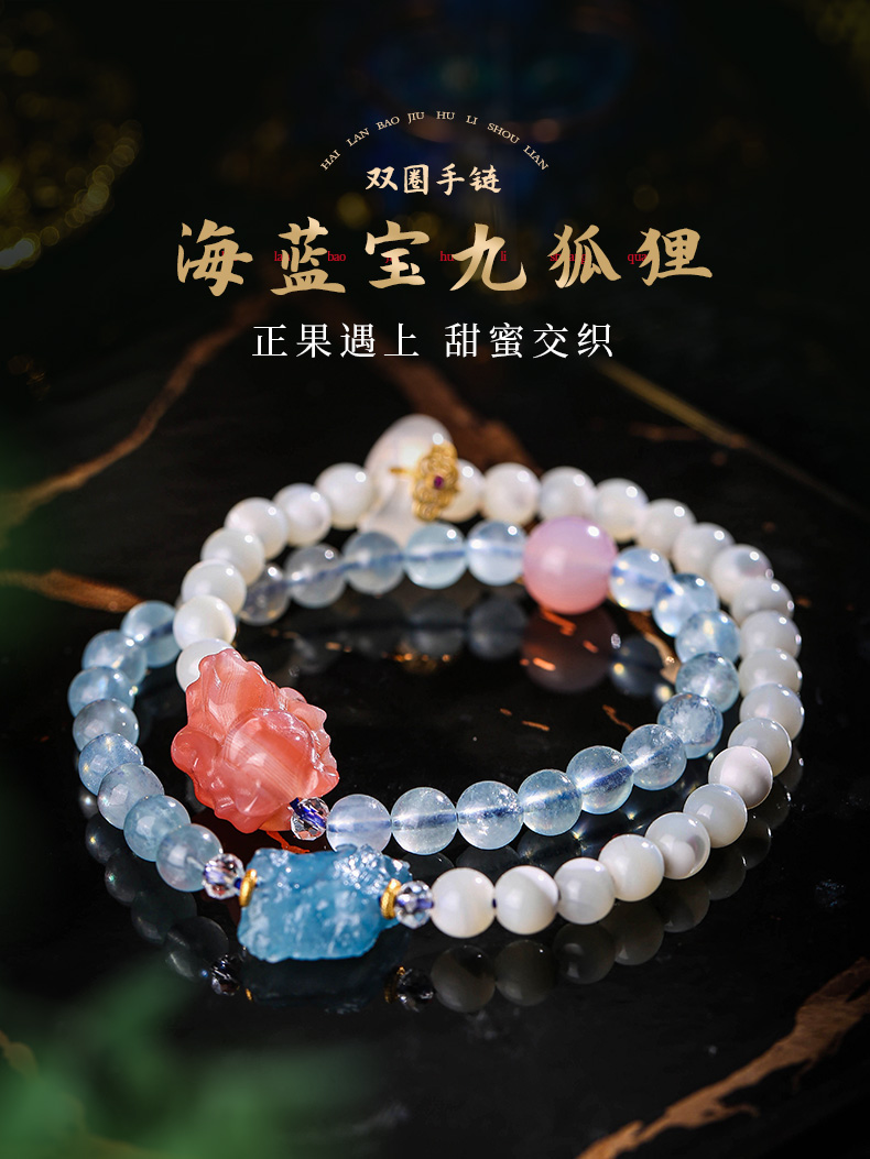 【女性之石】灵机吉品 海蓝宝双圈九狐狸手链女 盐源玛瑙手串跑环手饰