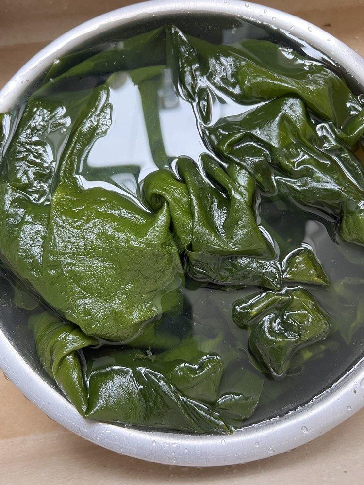 3、海带食用前请先用温水泡发几个小时,将盐分泡出,再根据个人喜好,将海带做成美味菜肴;