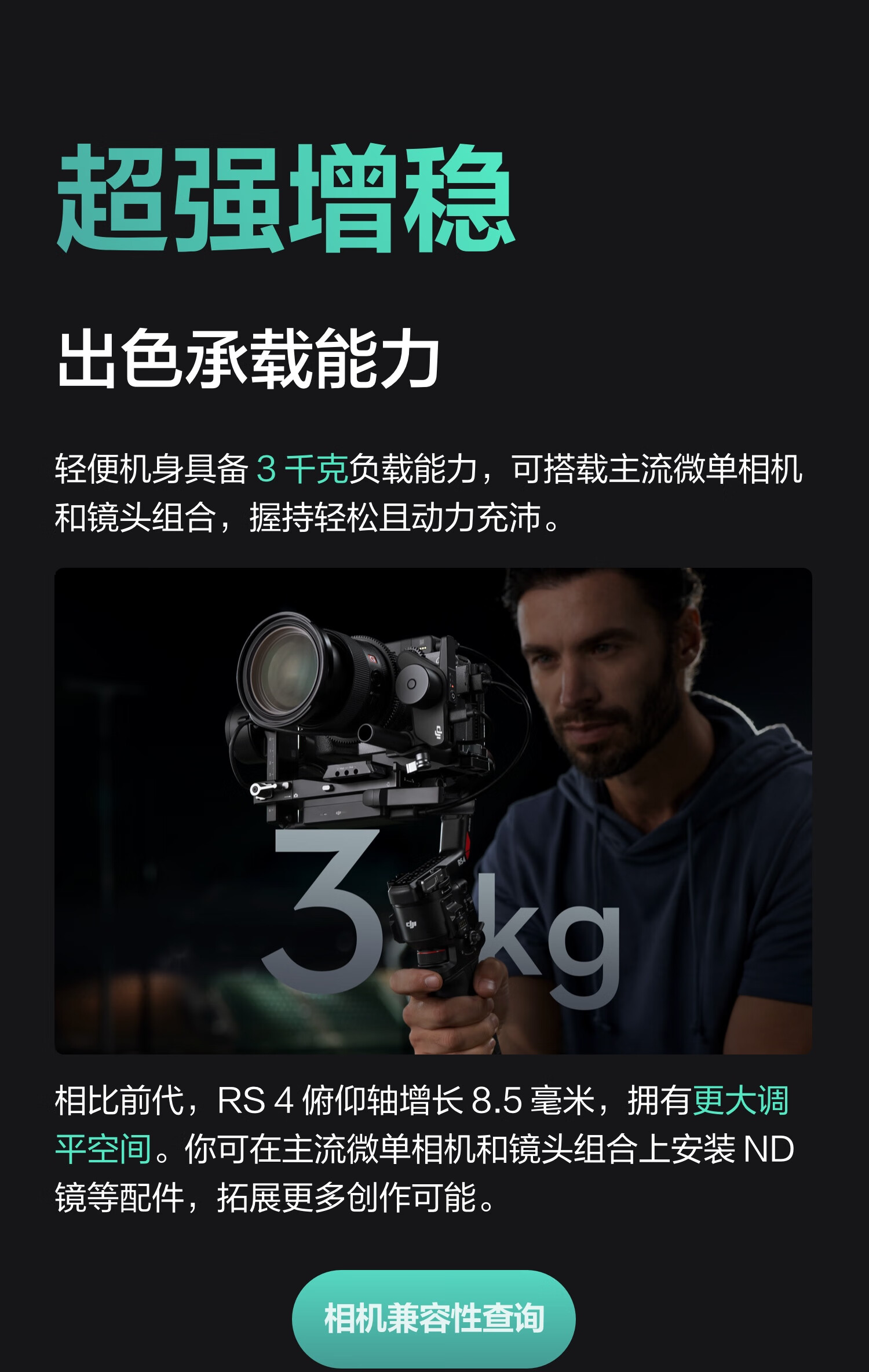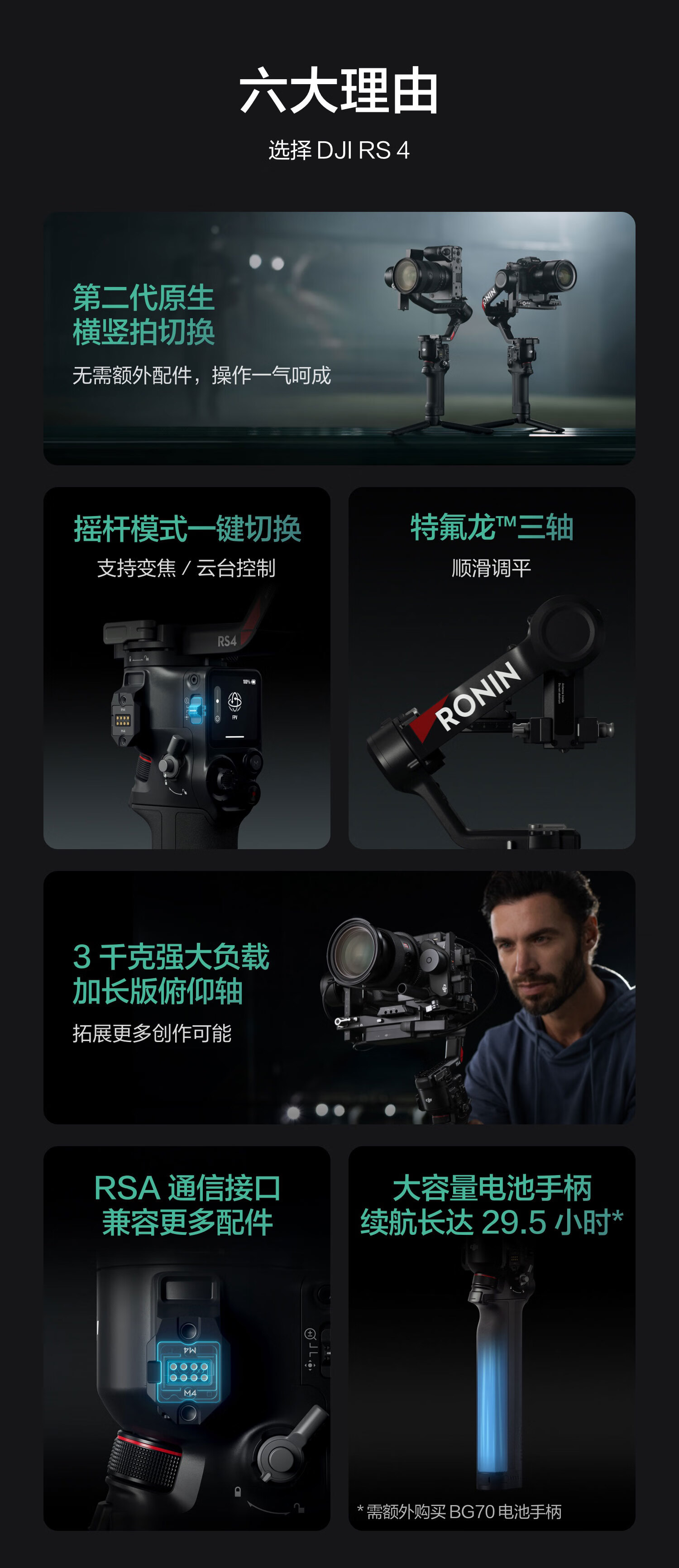 大疆DJI RS 4 如影手持云台稳定器 三轴防抖专业手持拍摄稳定器 3千克负载 单反微单高效商拍云台