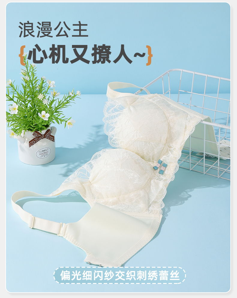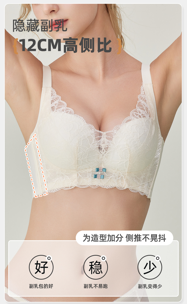 雅黛丽内衣女聚拢小胸上薄下厚防外扩调整型文胸性感蕾丝美背胸罩