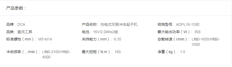 DCA东成充电式无刷冲击起子机ADPL16-158E