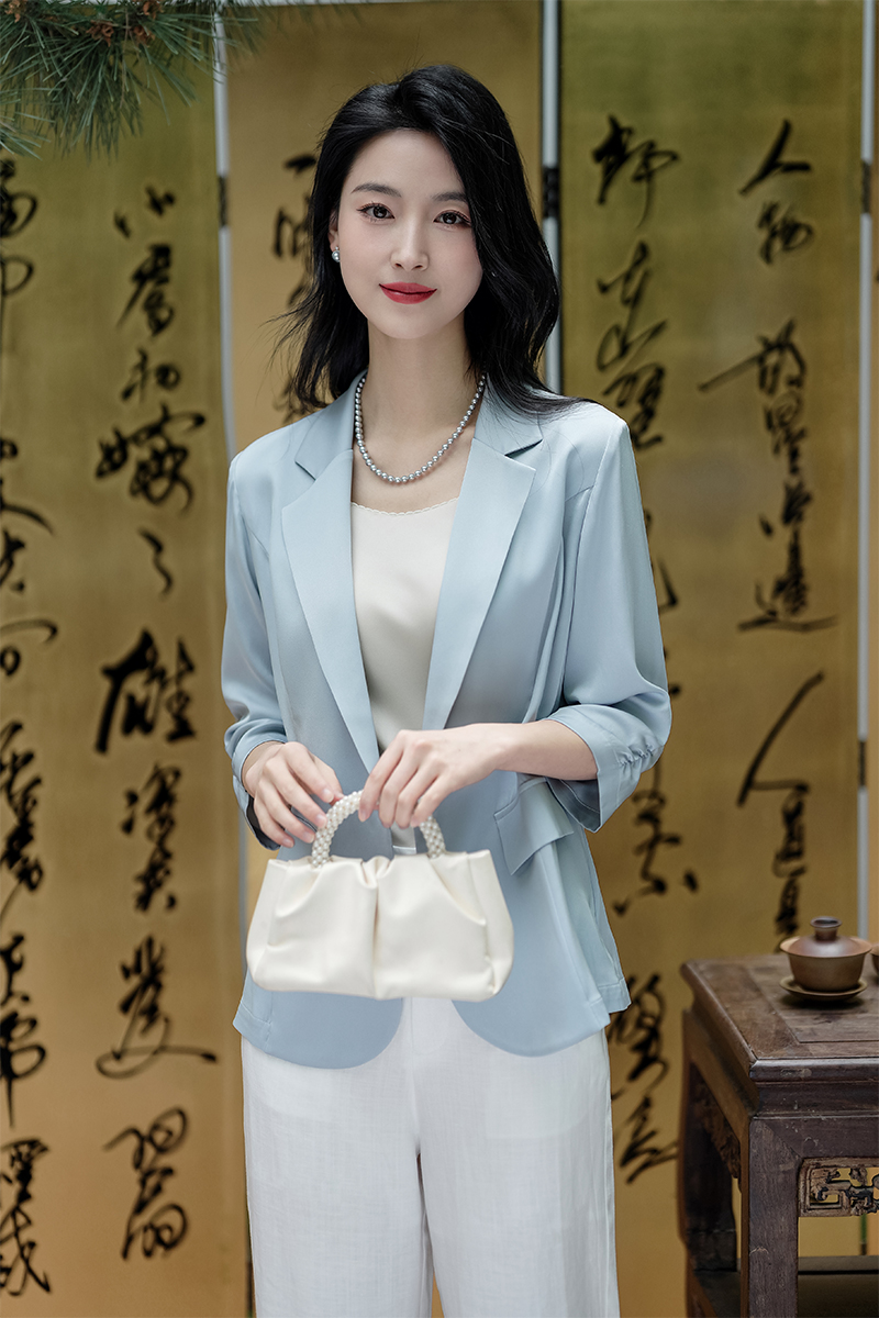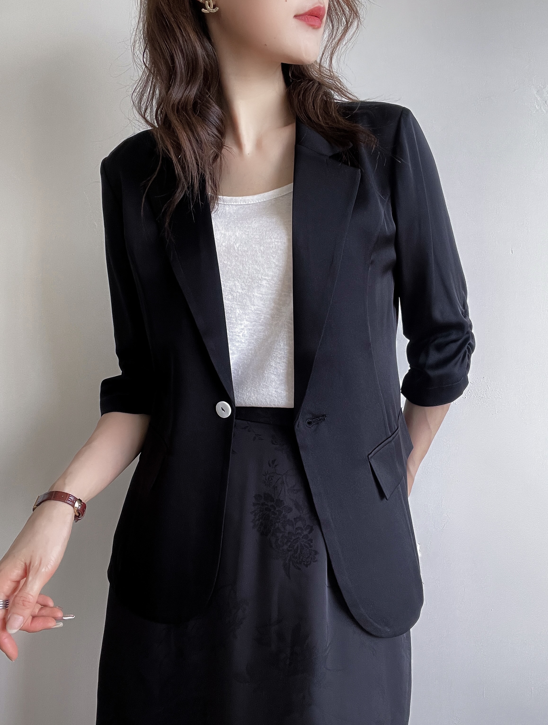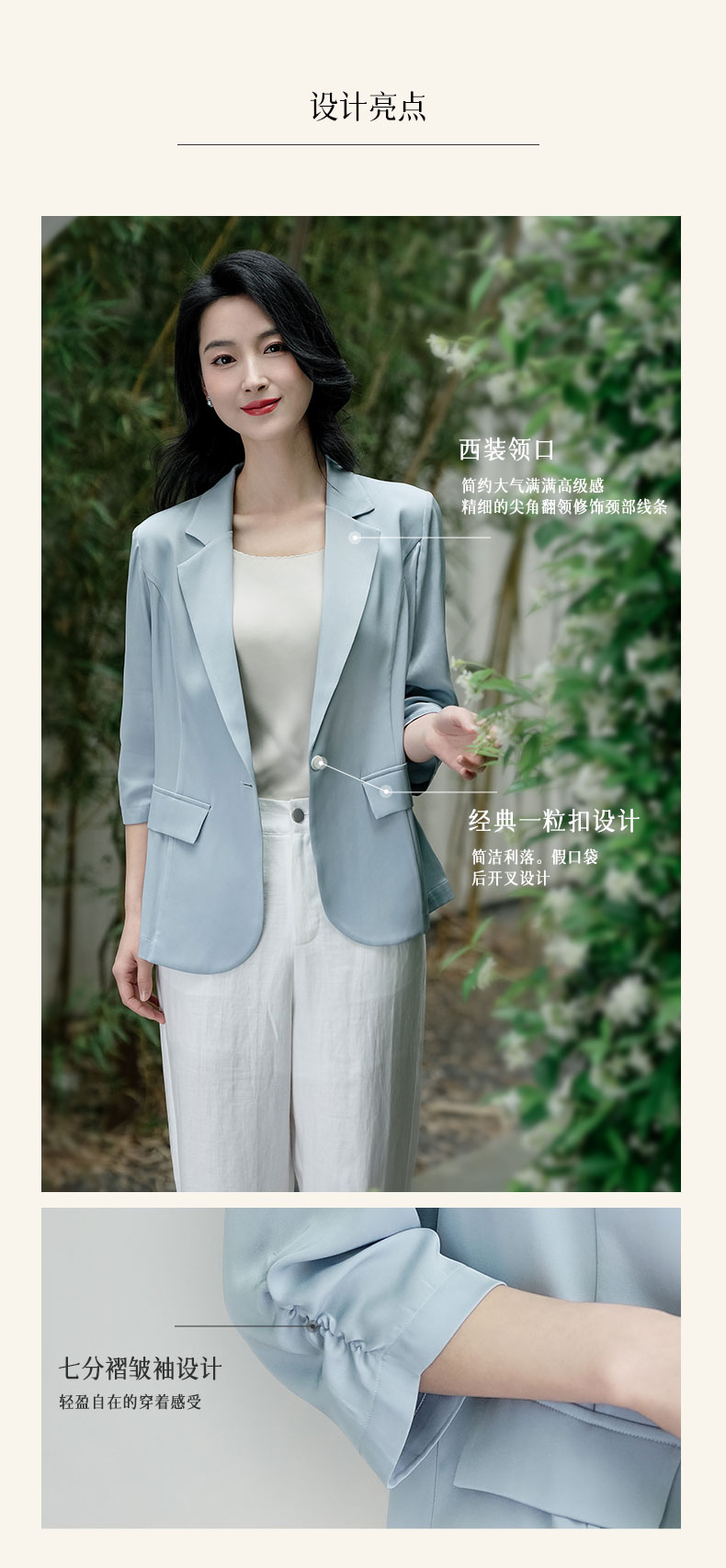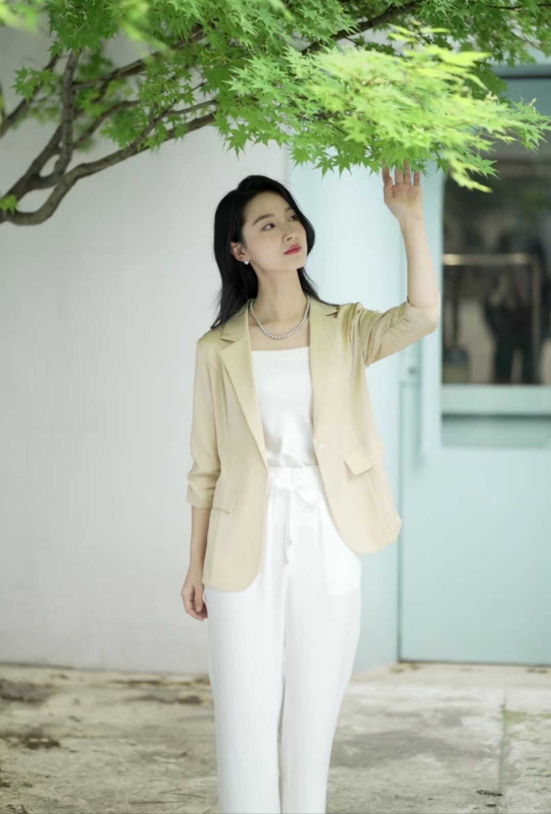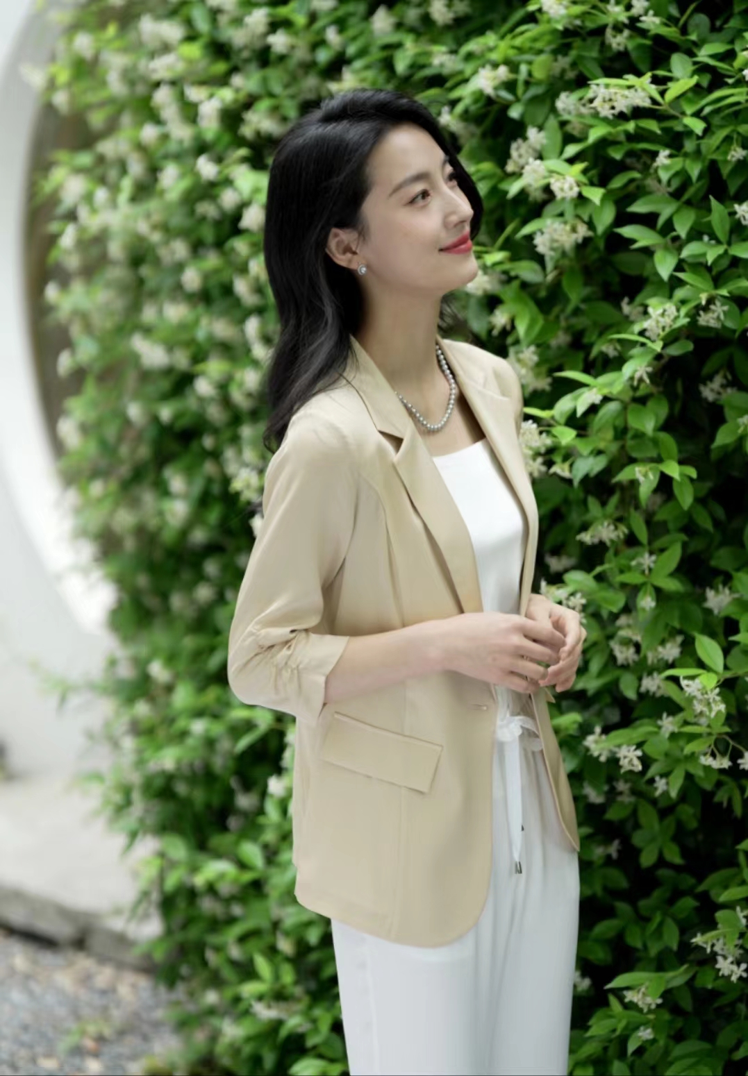 逸红颜明月优选 # 『亲氧』19姆米弹力双乔缎桑蚕丝夏季凉爽真丝西装外套,夏季职场通勤必备