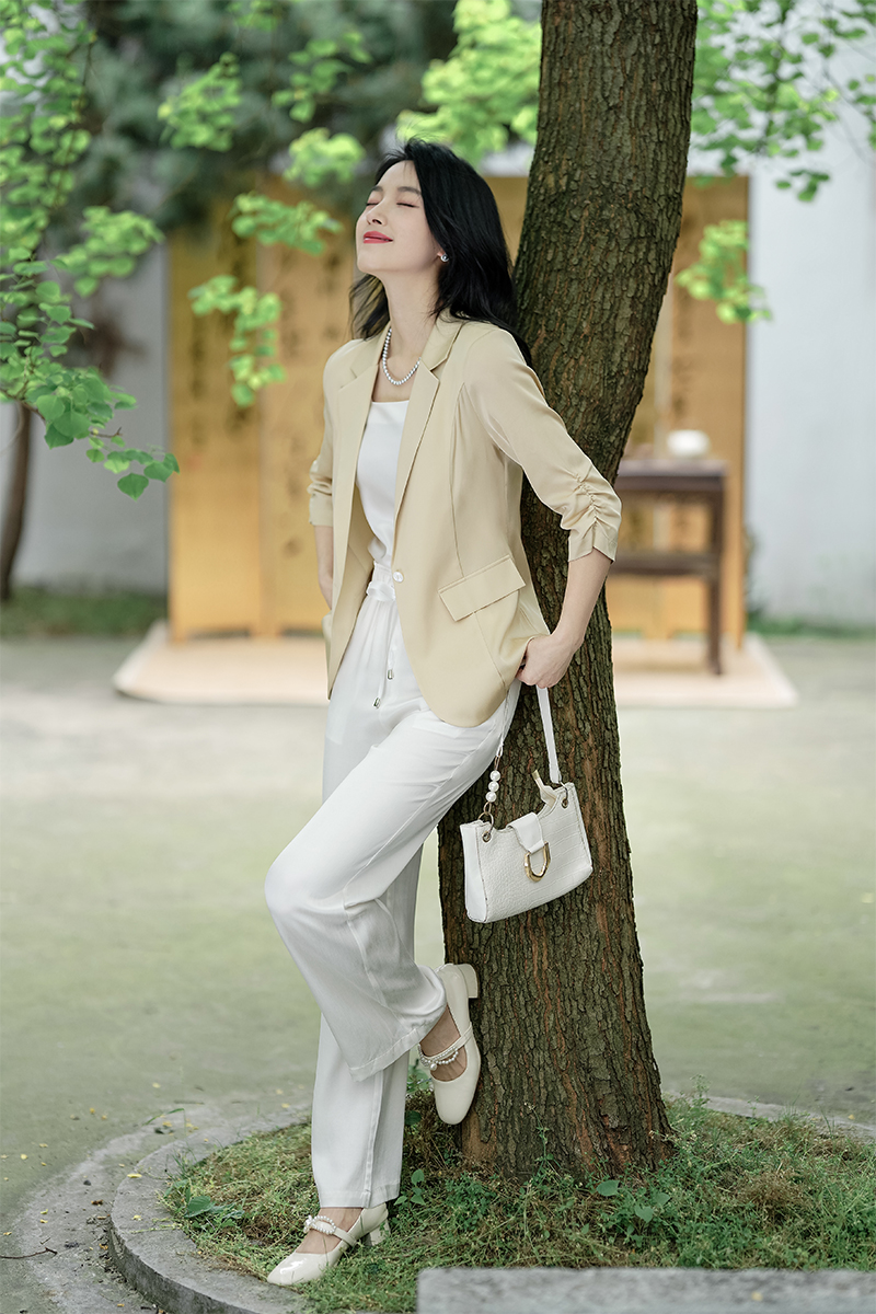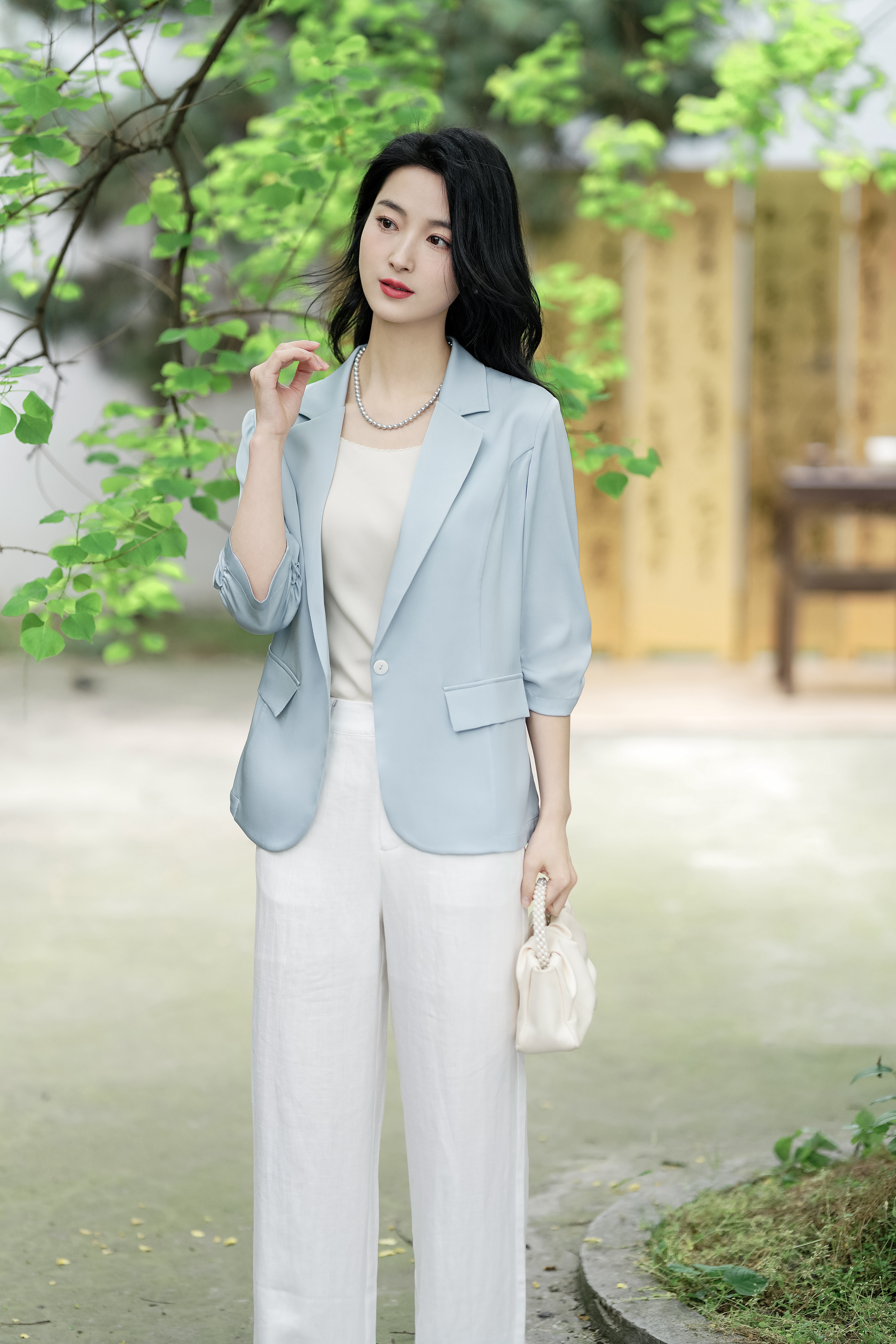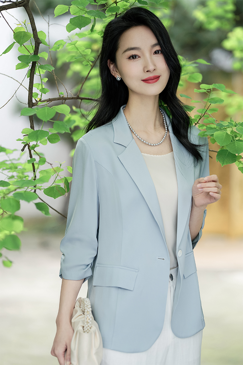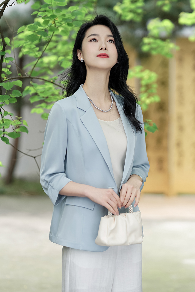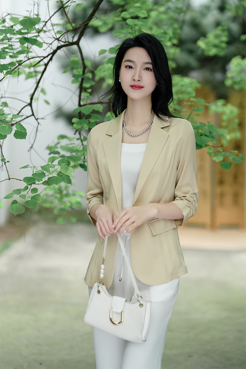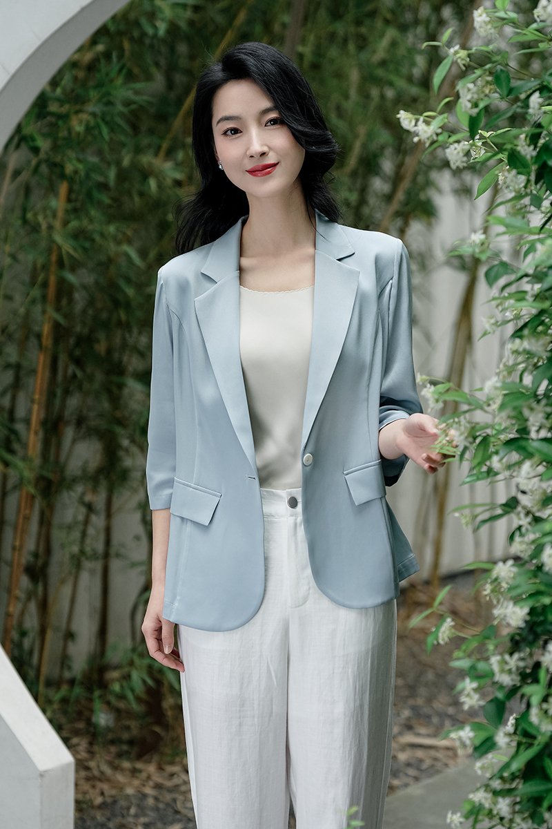 逸红颜明月优选 # 『亲氧』19姆米弹力双乔缎桑蚕丝夏季凉爽真丝西装外套,夏季职场通勤必备