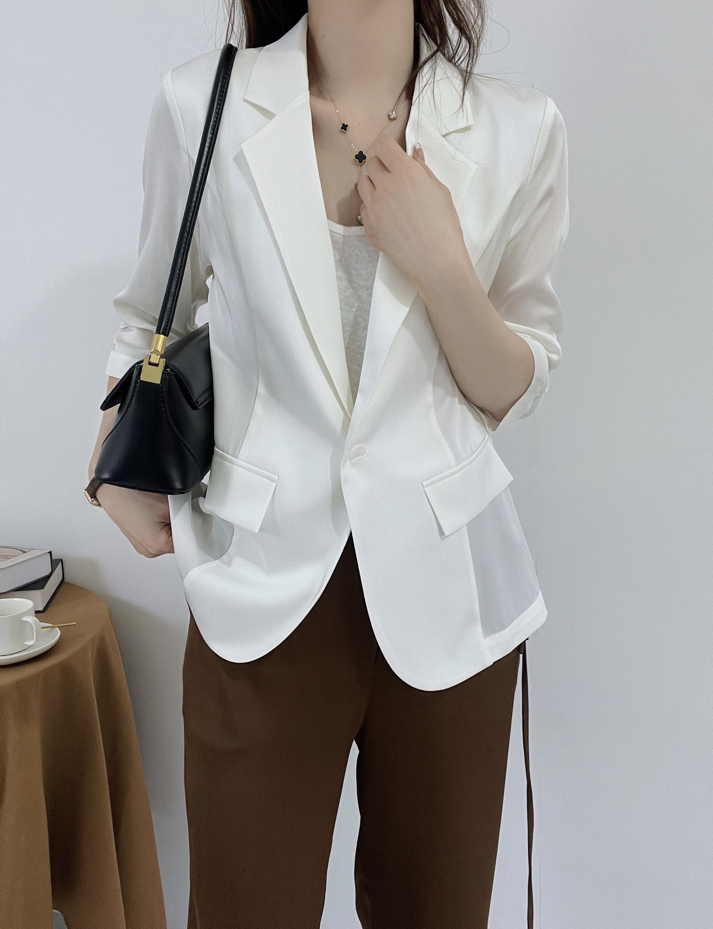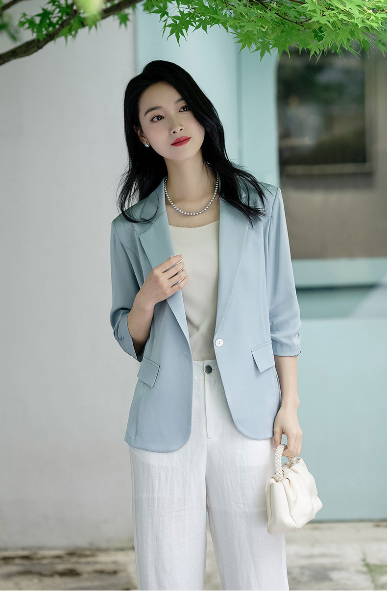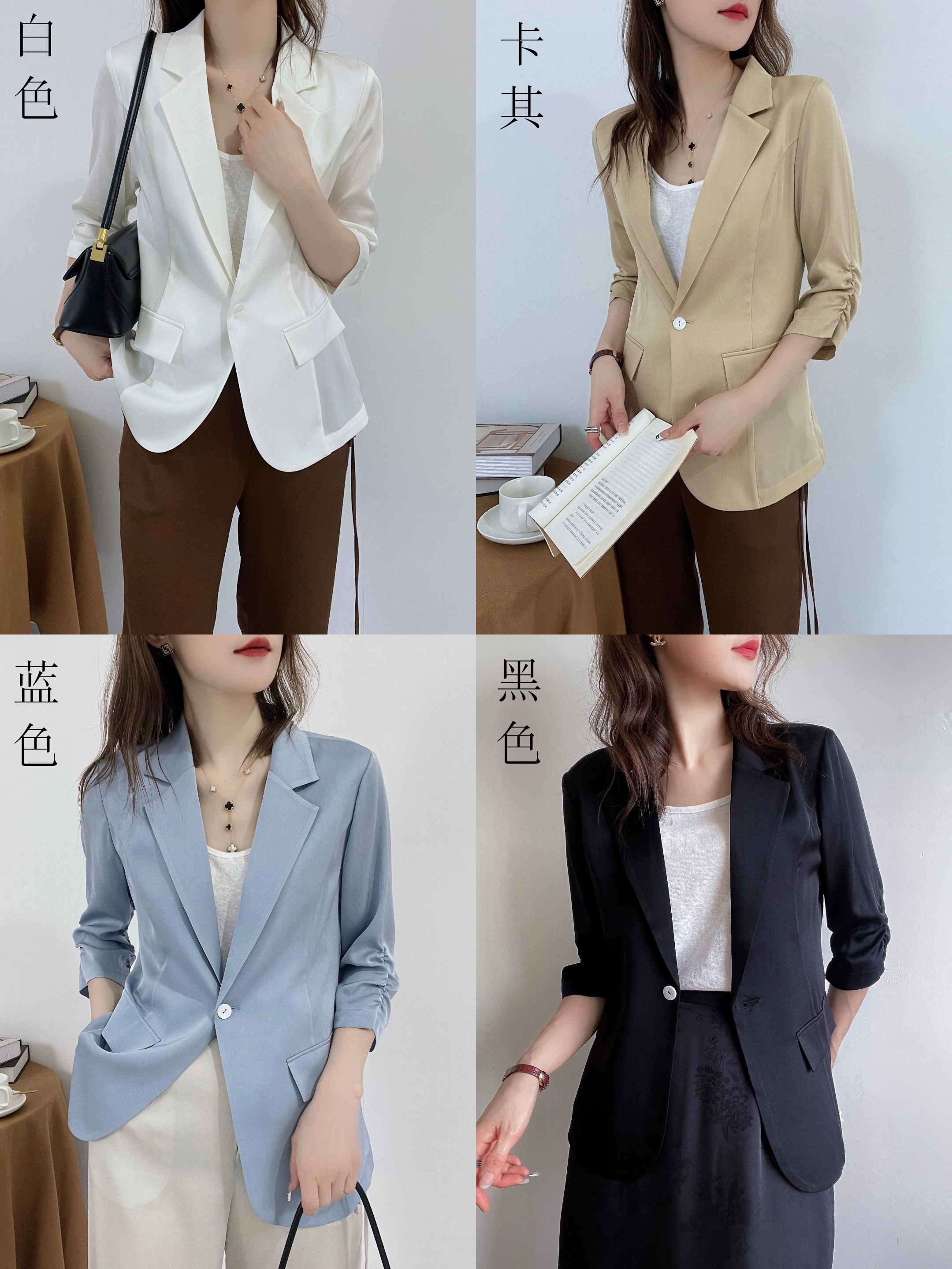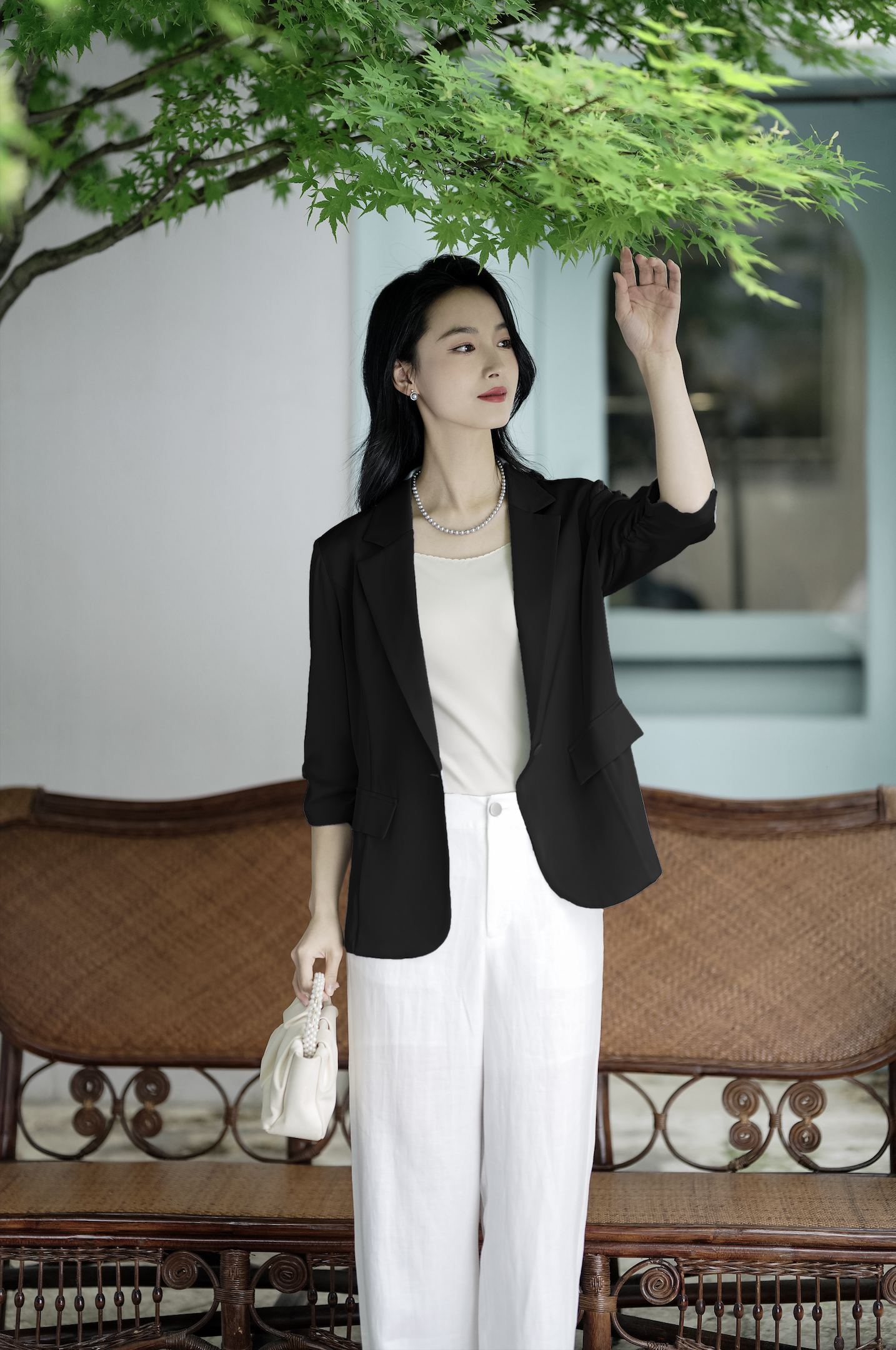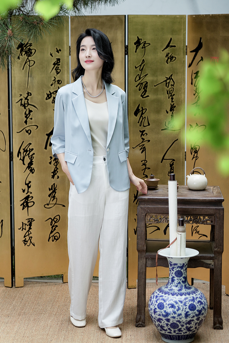 逸红颜明月优选 # 『亲氧』19姆米弹力双乔缎桑蚕丝夏季凉爽真丝西装外套,夏季职场通勤必备