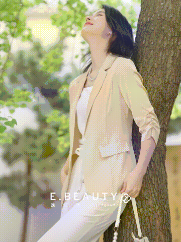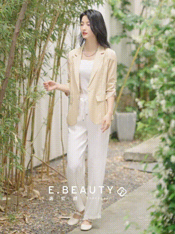 卡其色西装外套。可以搭配简单白T或者浅色系吊带+同色系裤子,整体风格休闲简单,利落干练,不会显得太拘束和正式