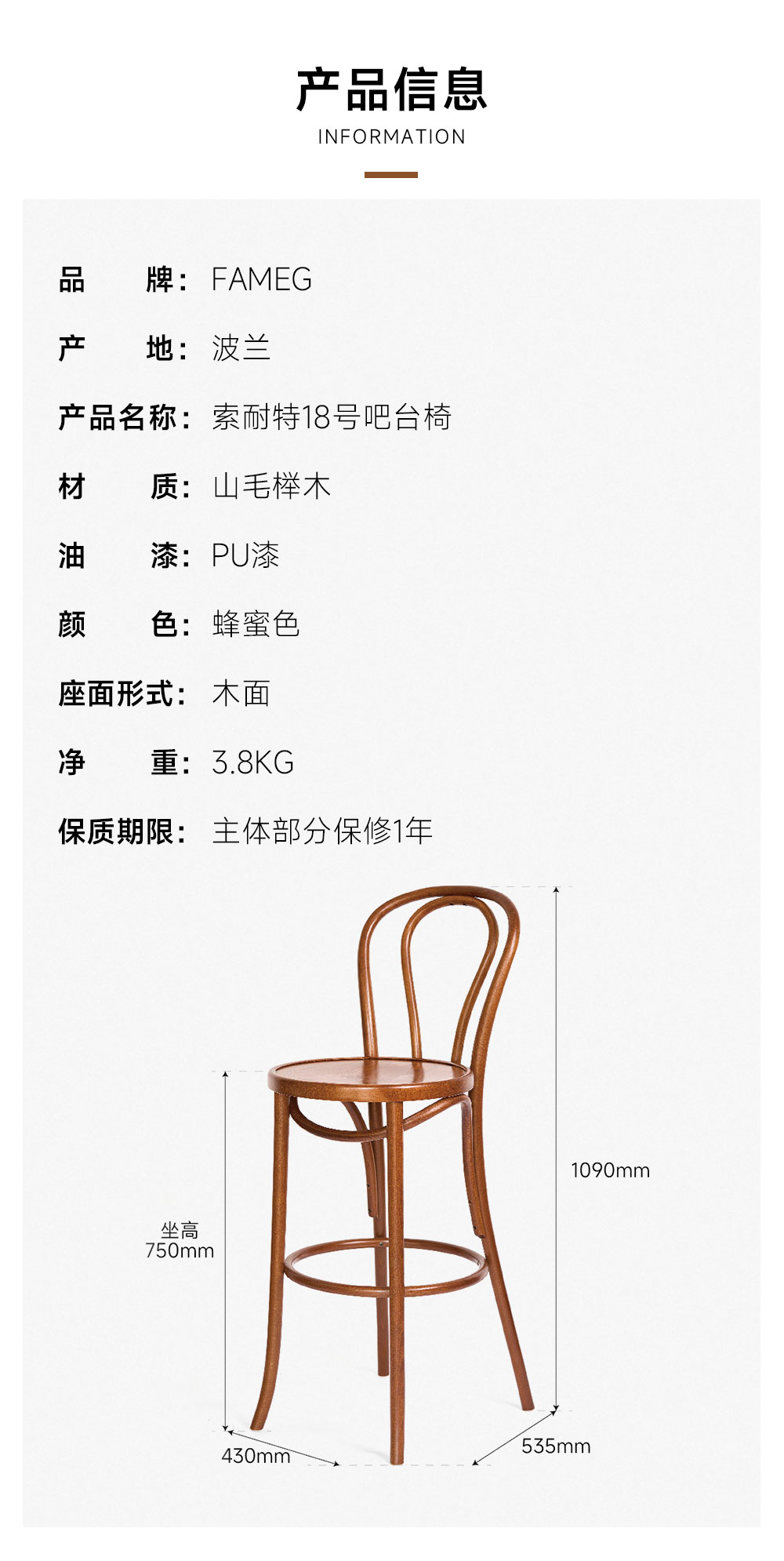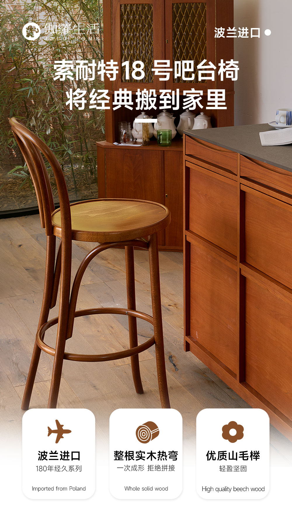 波兰进口-索耐特吧台椅18号