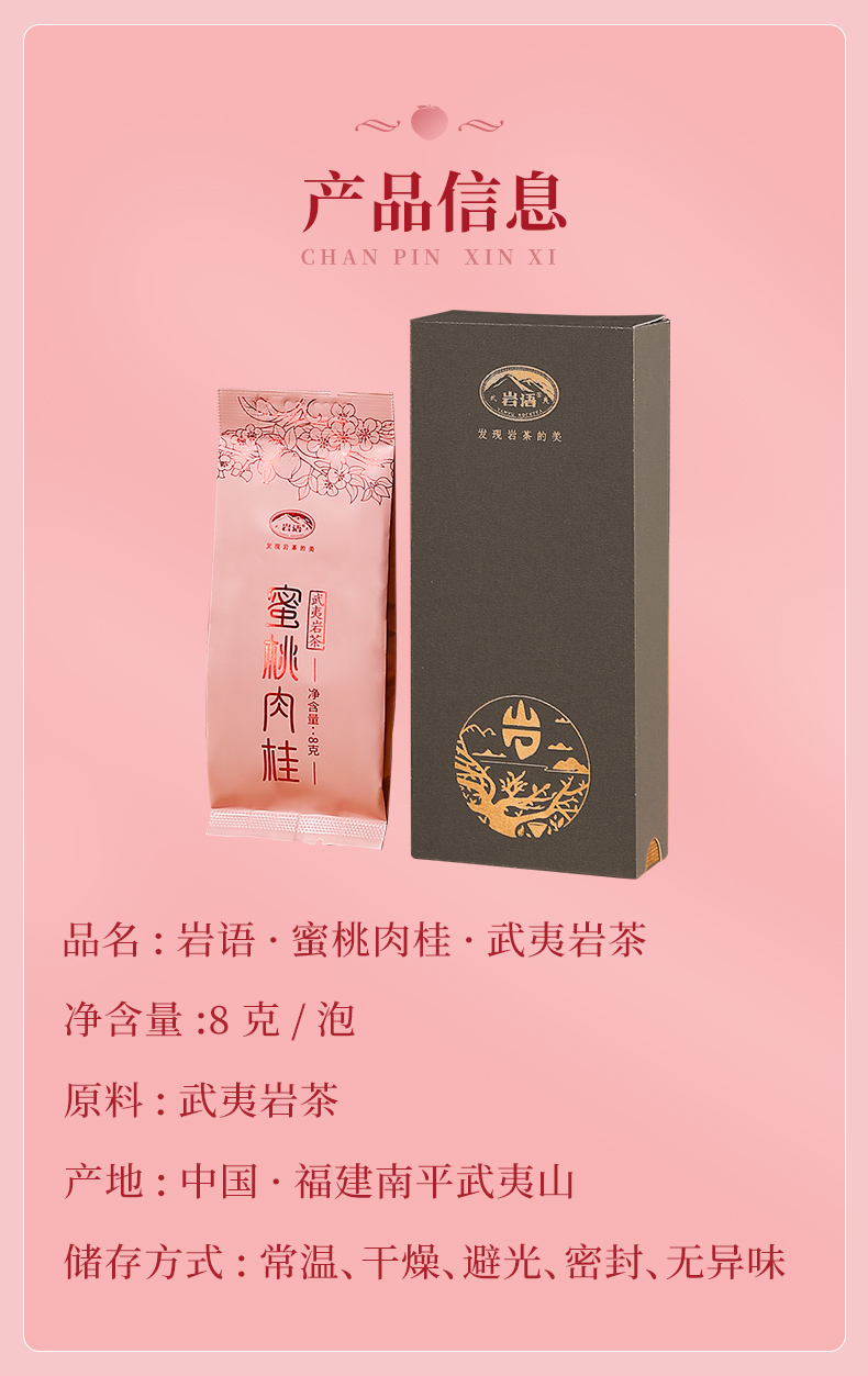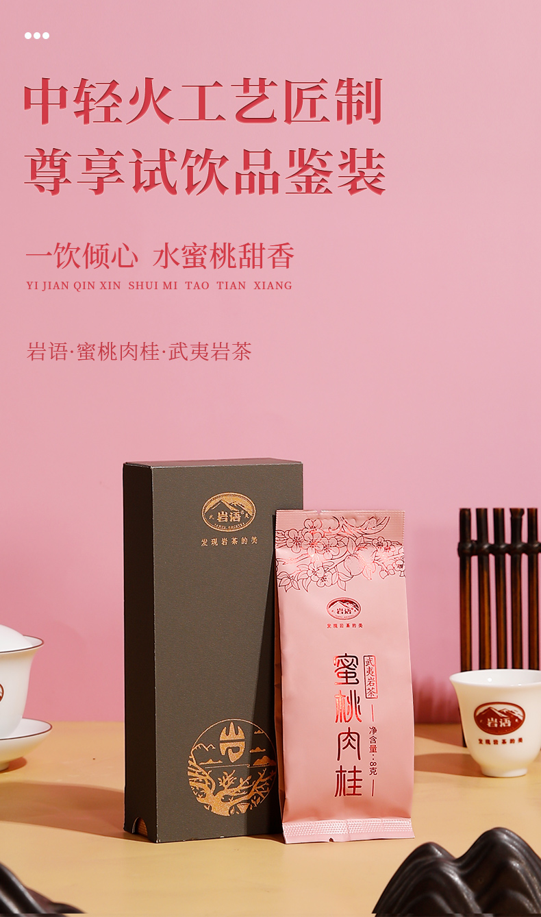 岩语 蜜桃肉桂 茶叶特级武夷岩茶桃香乌龙茶中轻火试饮装品鉴装16g