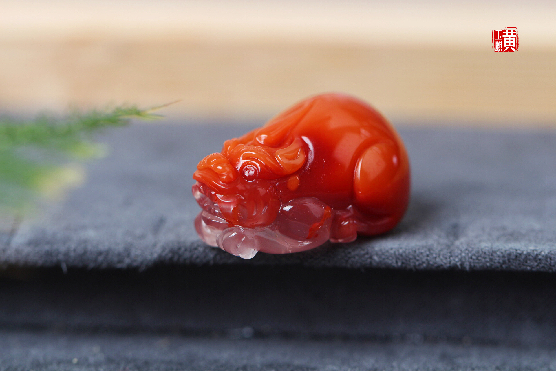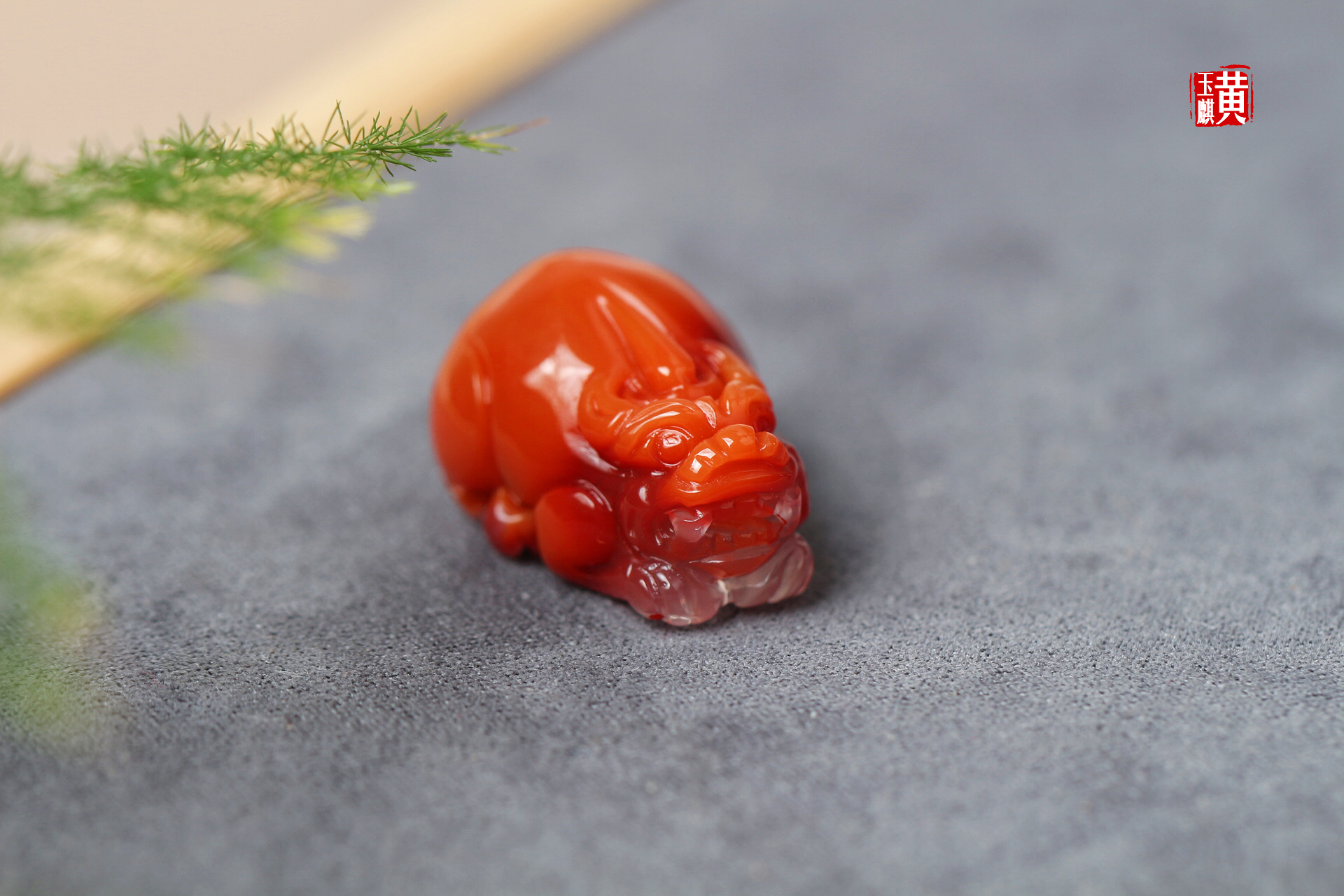 南红招财貔貅吊坠,色泽红润,鲜艳明亮,貔貅威武霸气,寓意招财纳福,鸿运当头,好运相伴。