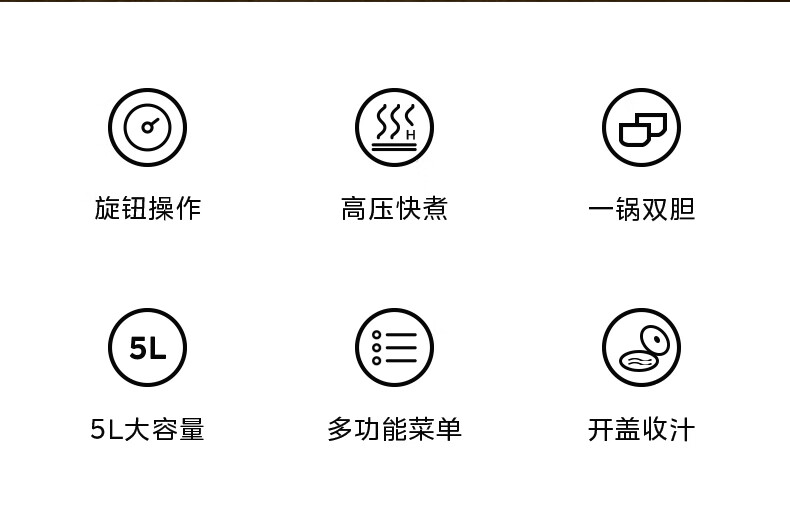 美的(Midea)电压力锅 5L 简易操作 旋钮 一锅双胆 1000W【鲜享5.0】