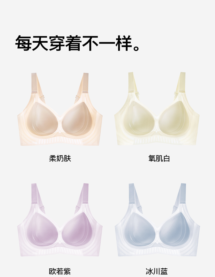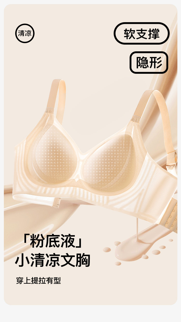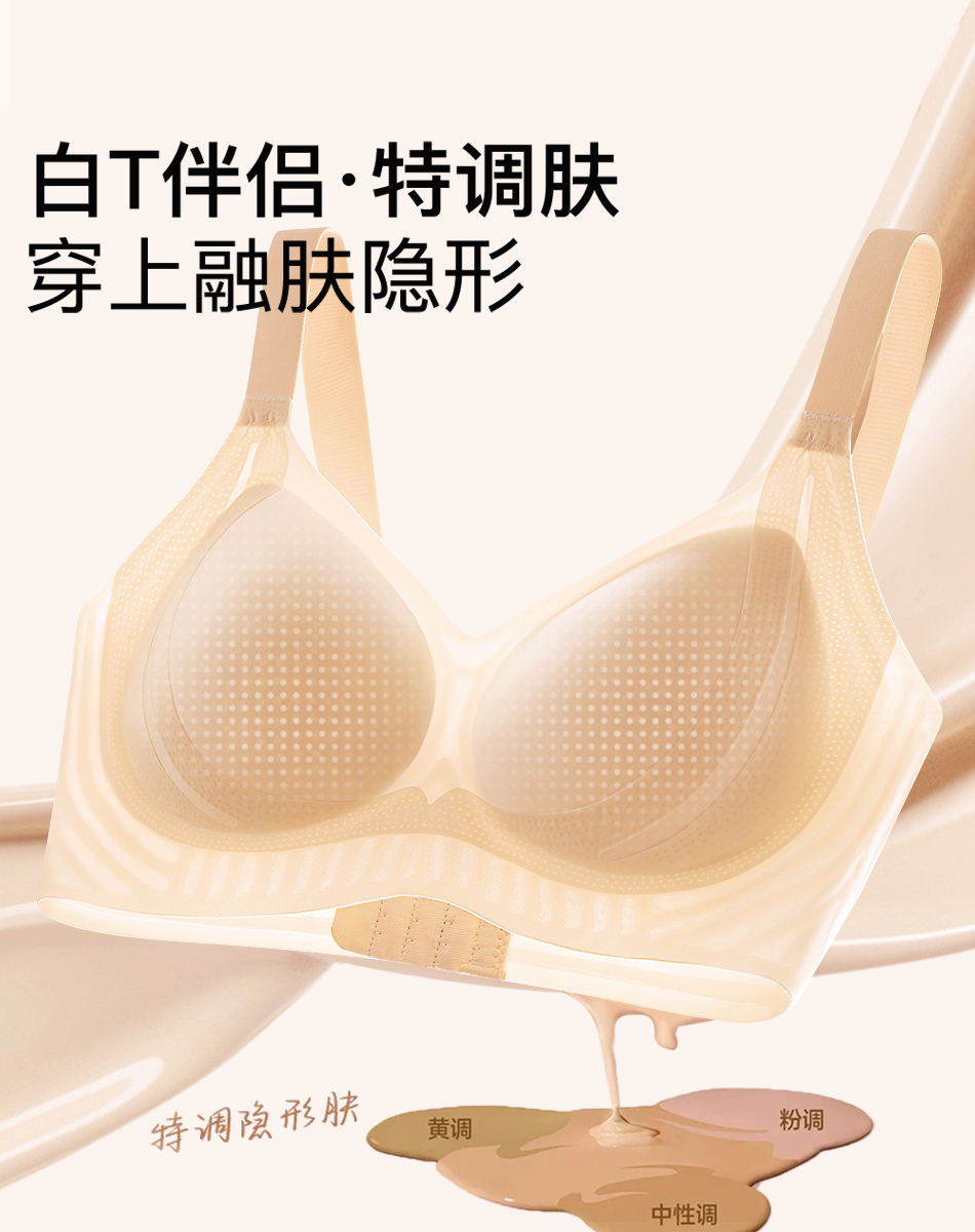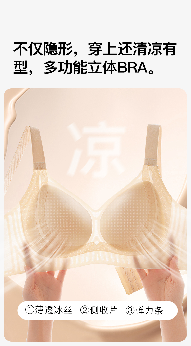 【隐形粉底肤】大码内衣女无痕冰丝透气提拉防垂收副乳固定杯文胸Y127若丝透感