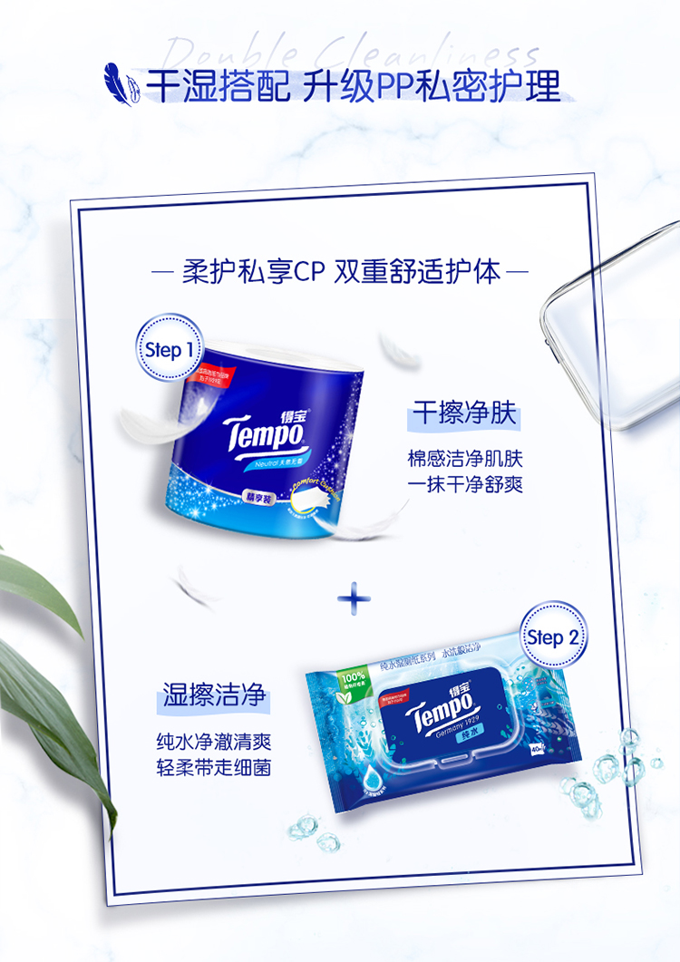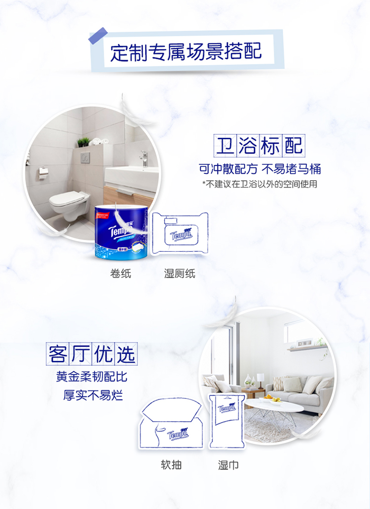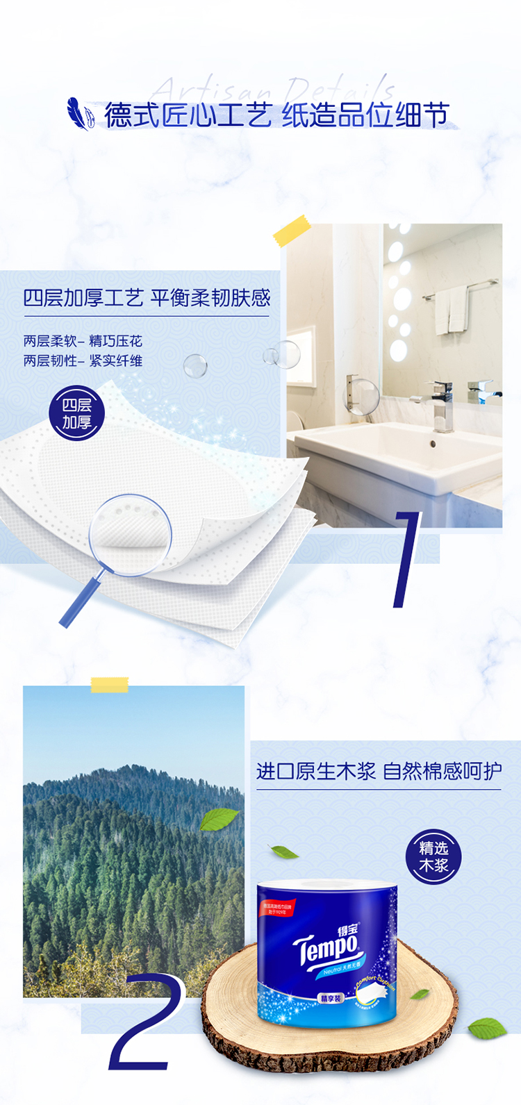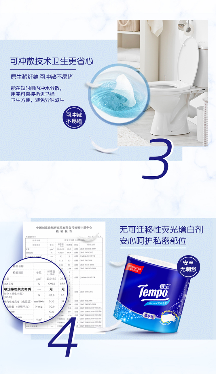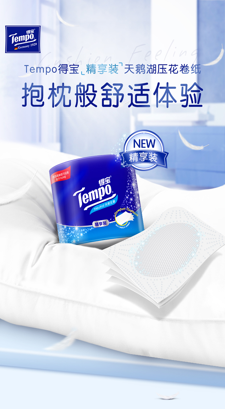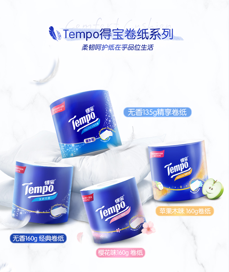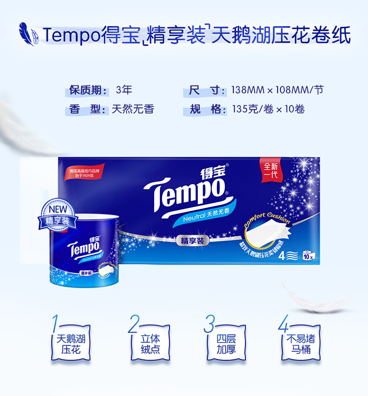 f『得宝Tempo』有芯卫卷135克4层天鹅湖无香10卷/提