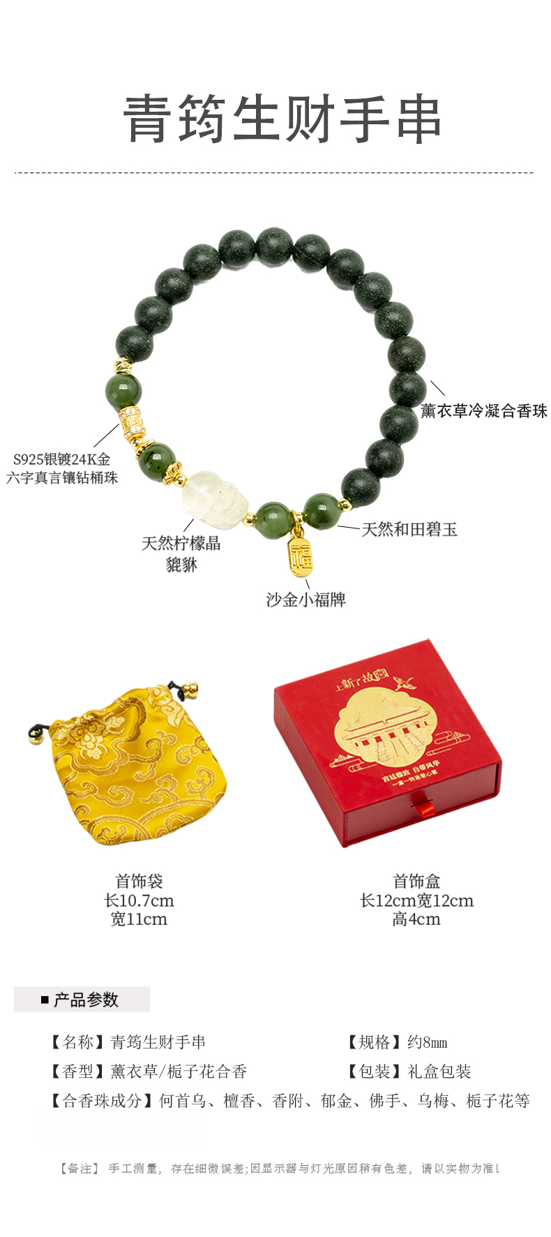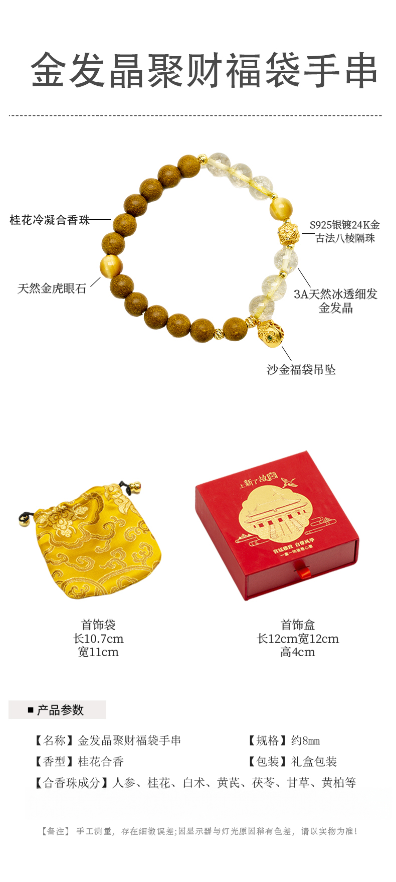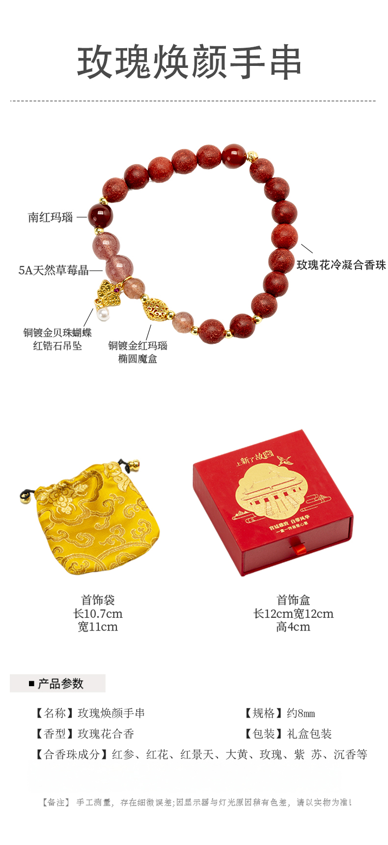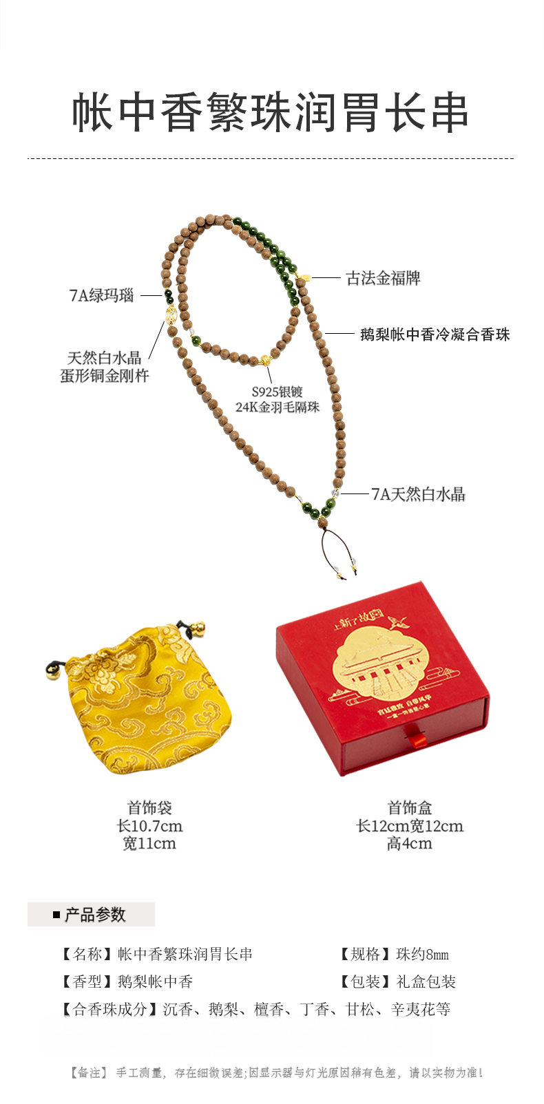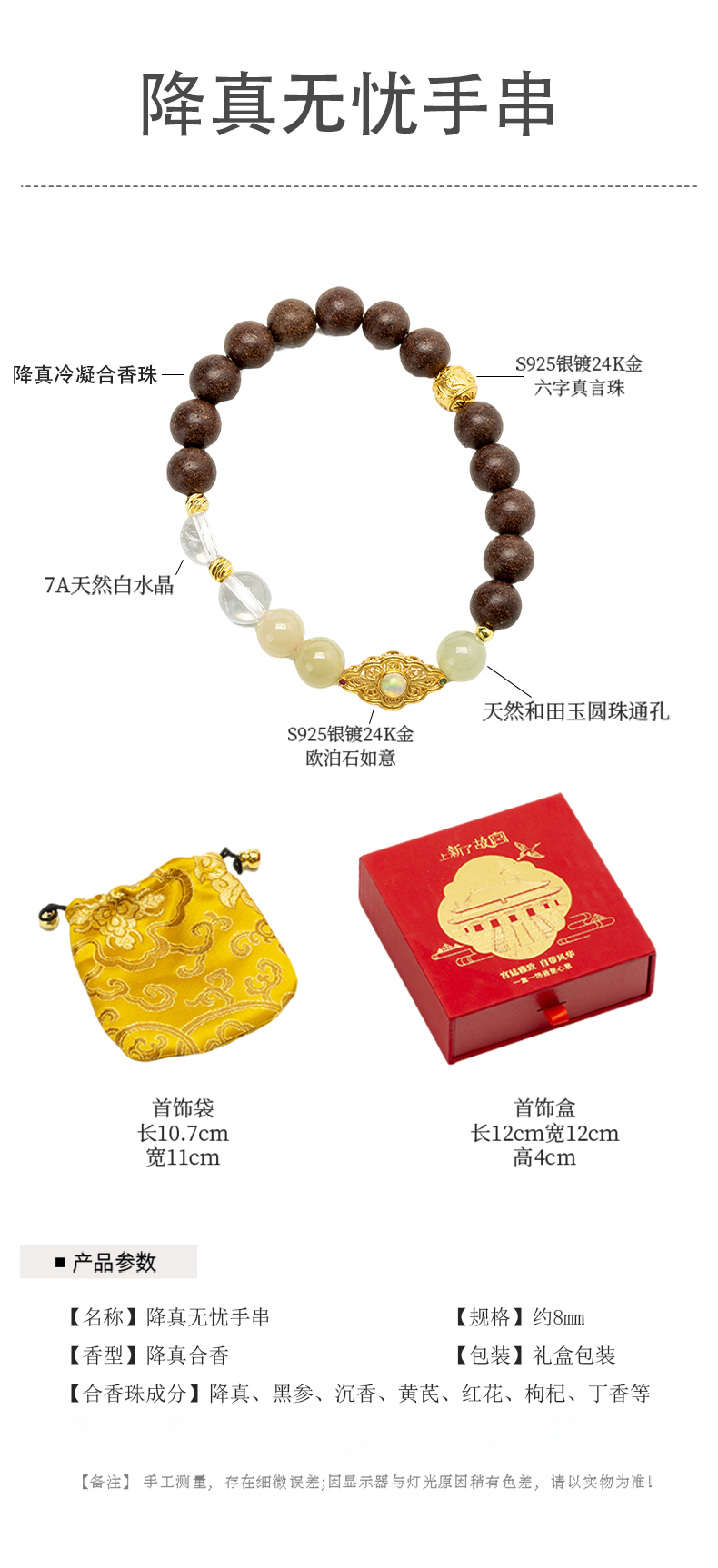 【品名】“故宫文创*千年香道”上新了故宫·瑞启风华系列手串 故宫级礼盒包装 【规格】 降真无忧手串*1 灰月光安睡手串*1 帐中香繁珠润胃长串*1 青筠生财手串*1 玫瑰焕颜手串*1 金发晶聚财福袋手串*1 【产地】国内 【发货包装】独立包装 【发货地】福建 【发货快递】邮政、极兔、中通随机发 【不发货区域】 新疆、西藏、青海、港澳台 【发货时效】48-72小时,周末节假日顺延 【发货说明】 产品一旦发出不支持拦截撤单(非质量问题拒签、改地址收取3元/套寄出运费) |