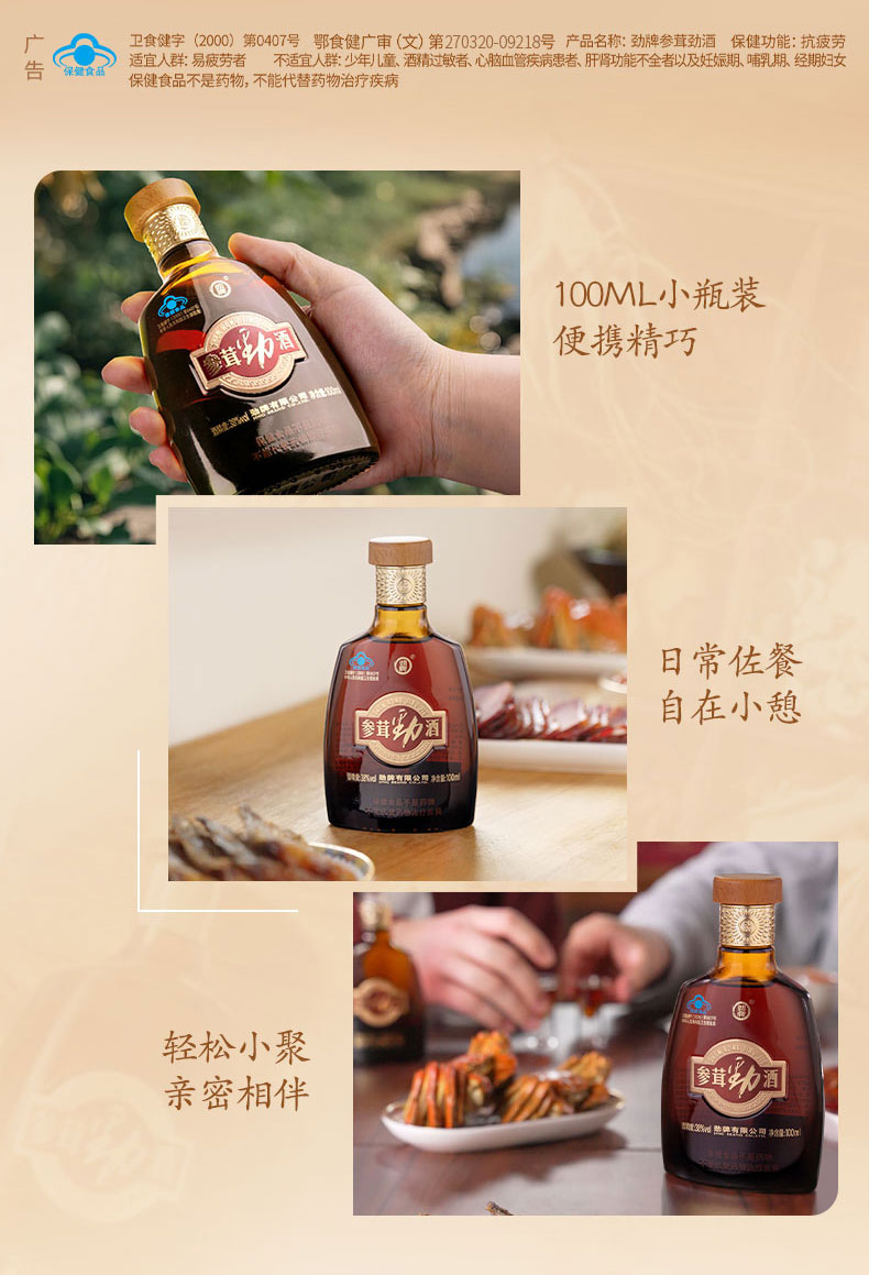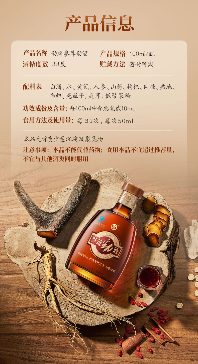 100ml38度参茸劲酒光瓶装