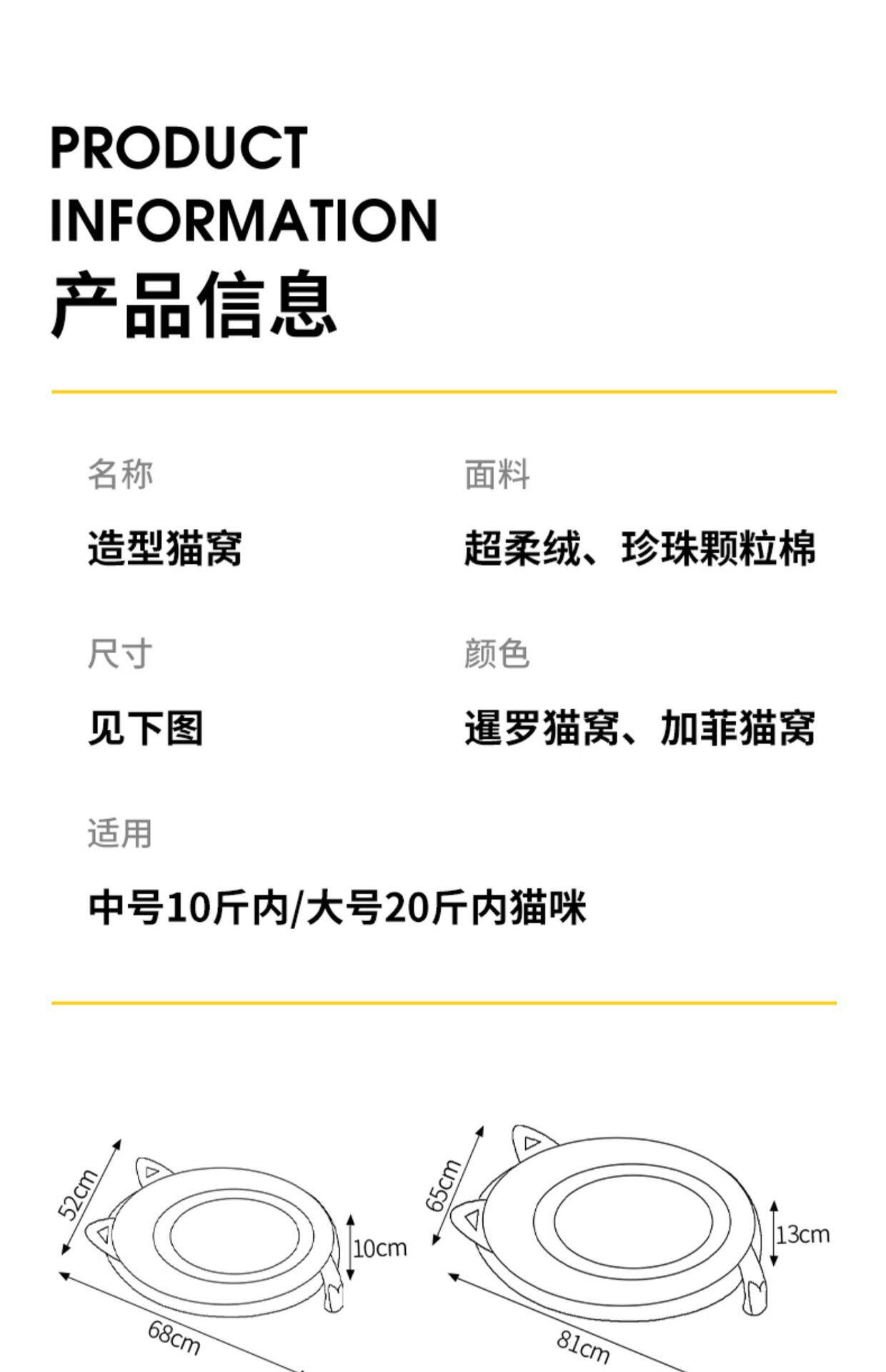 乐优派卡通造型猫窝狗窝小型犬深度睡眠窝秋冬款保暖猫窝四季通用