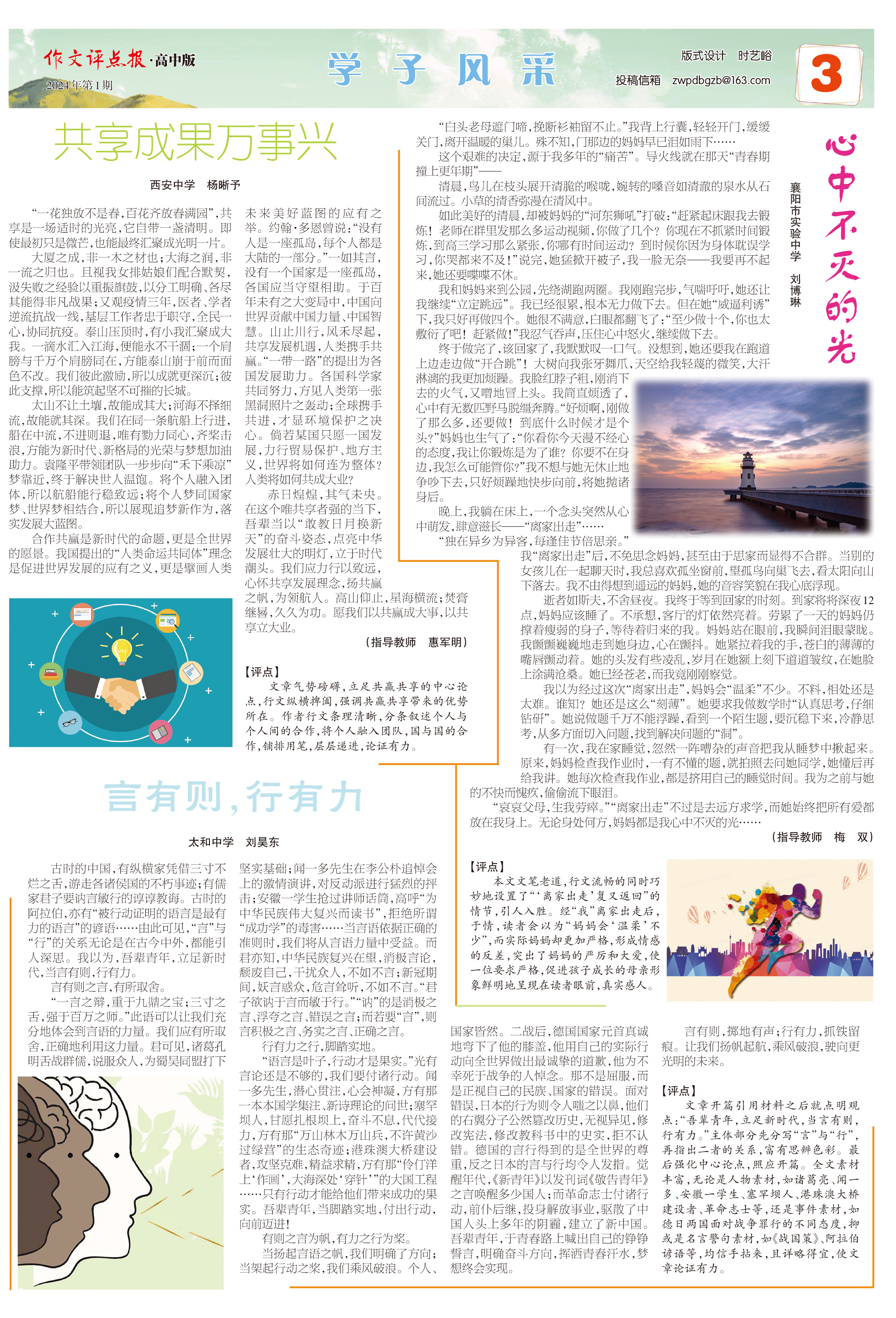 三、增值服务。订阅《作文评点报》,每月可获赠“作文支招”微课、作文素材包或中考、高考考前押题卷等,扫码获取。