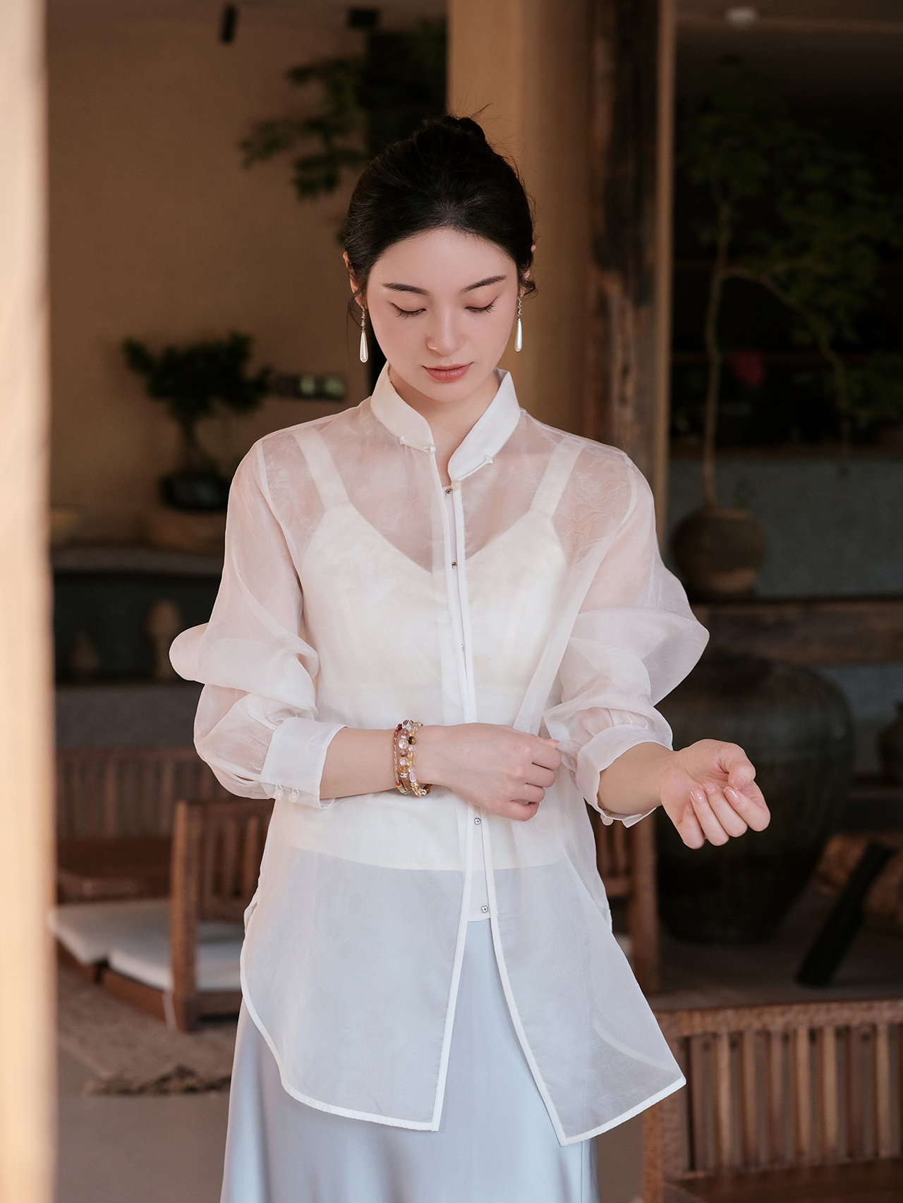 盛唐婧 |手工扎染真丝绡上衣-白色