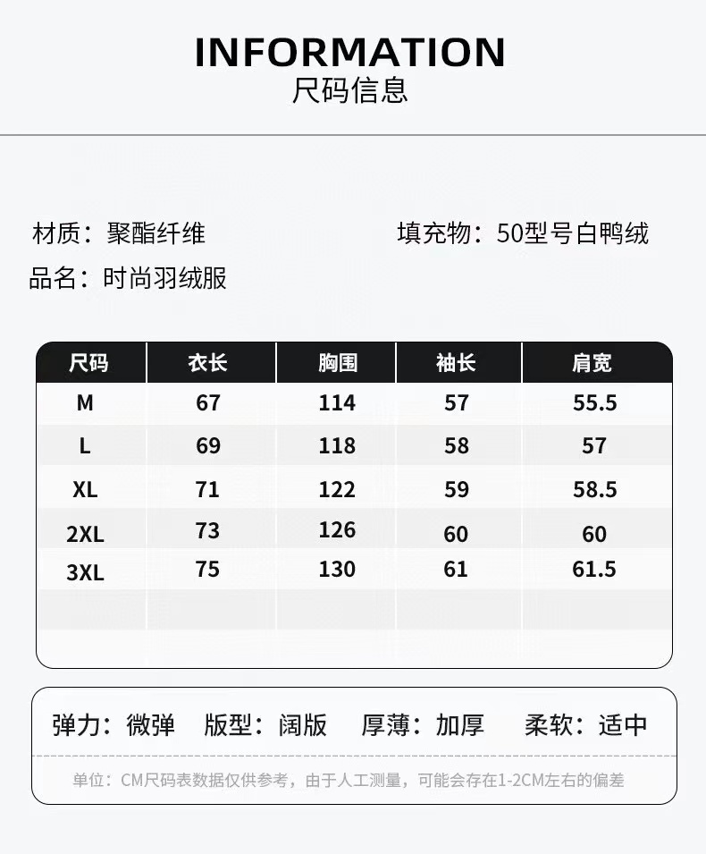 寒冬御寒,不必为高价买单!这款羽绒服以国标50绒填充,绒子含量精准达50%,经专业检测认证,蓬松保暖性能完全达标,给你实打实的冬日温暖守护。衣身采用定制磨砂质感面料,视觉与体感双重升级。立体剪裁版型适配多种身形,无论是日常通勤、户外出行还是休闲聚会,都能轻松驾驭,兼顾实用性与时尚度。
