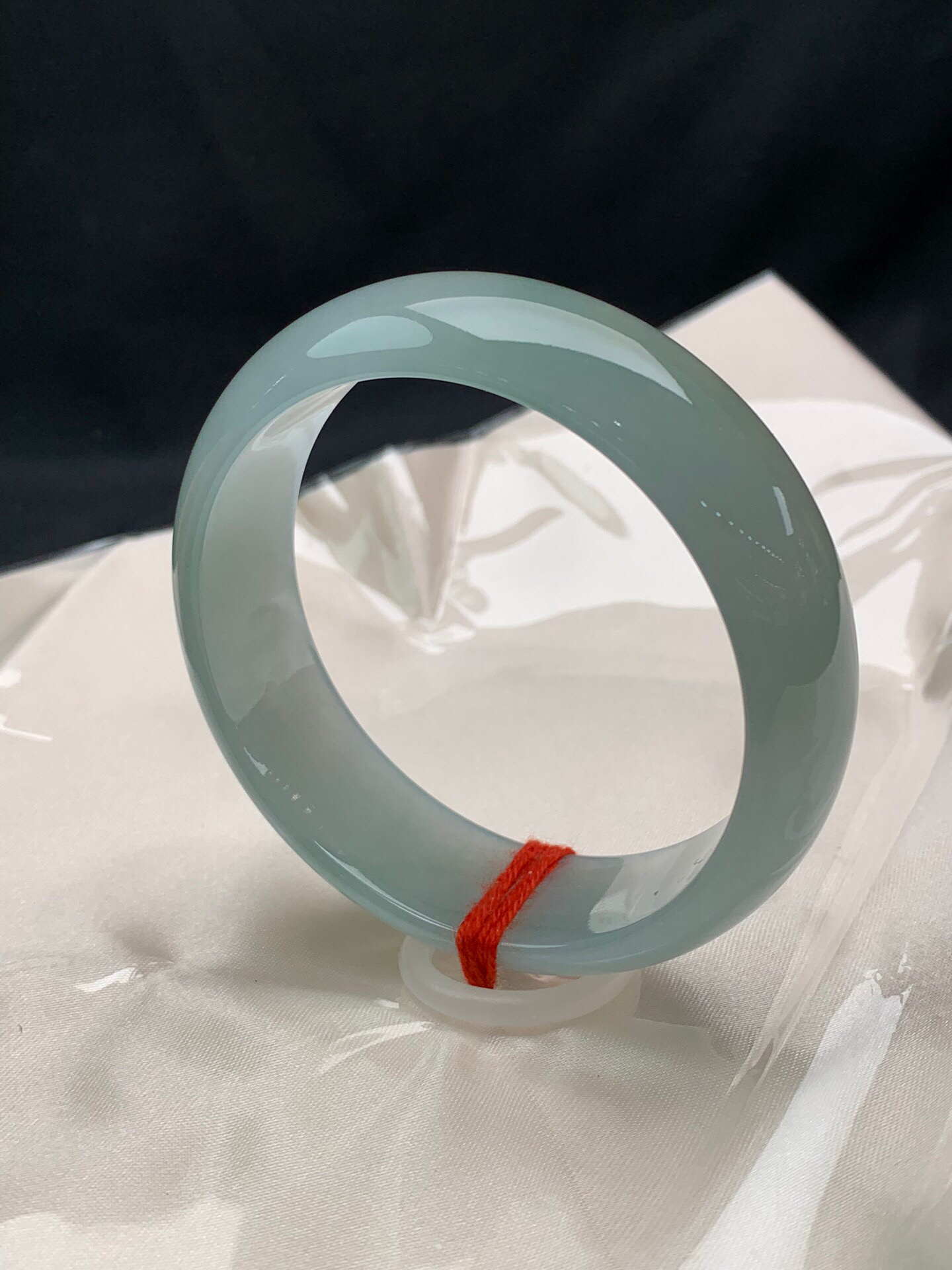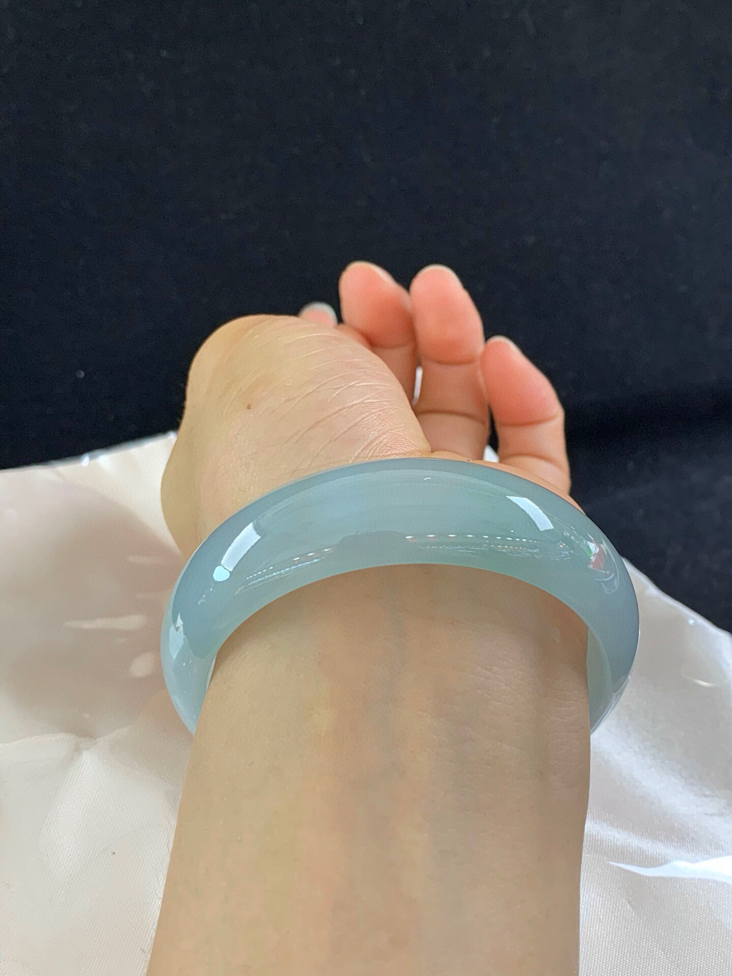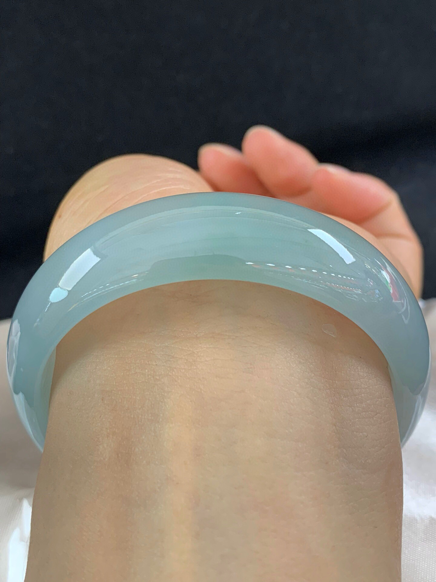 612275,59.5圈口,冰晴正圈平安镯,宽版大圈口,晴水蓝底色,飘色线,底子冰润,无纹裂,尺寸:59.5-18.6-7.4,超值价💰41600