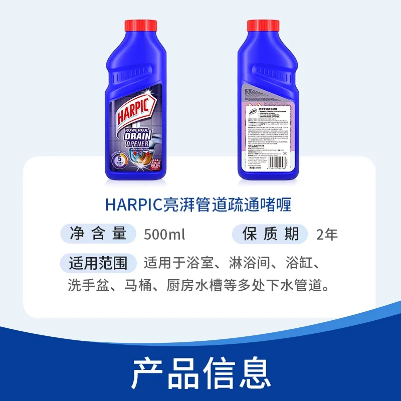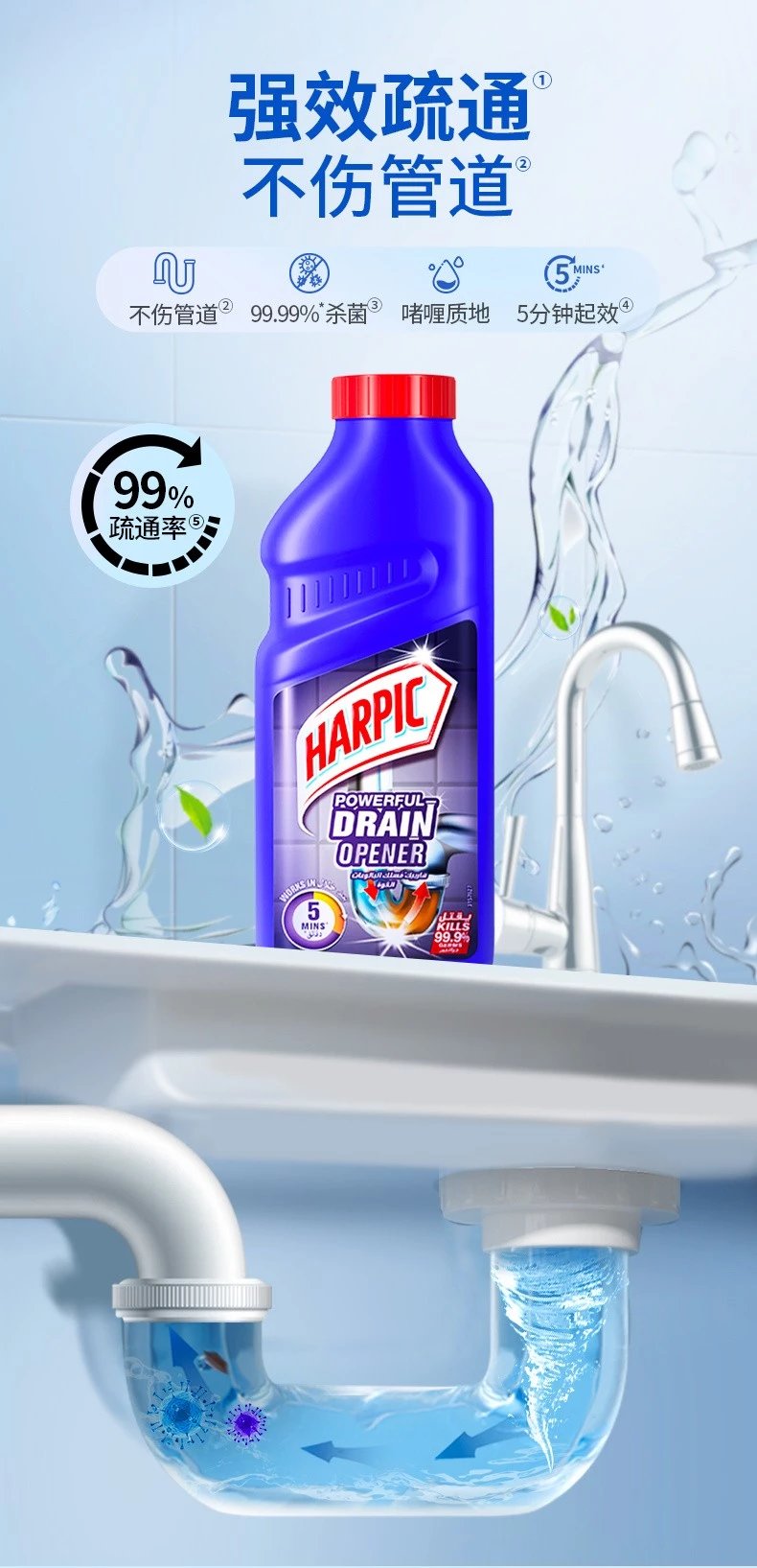 滴露兄弟品牌!全球洁厕产品销量No.1【英国进口亮湃HARPIC洁厕液750ml/管道疏通啫喱500ml】除菌率99%,强效浓缩配方,不伤管道,使用安全,操作简单!