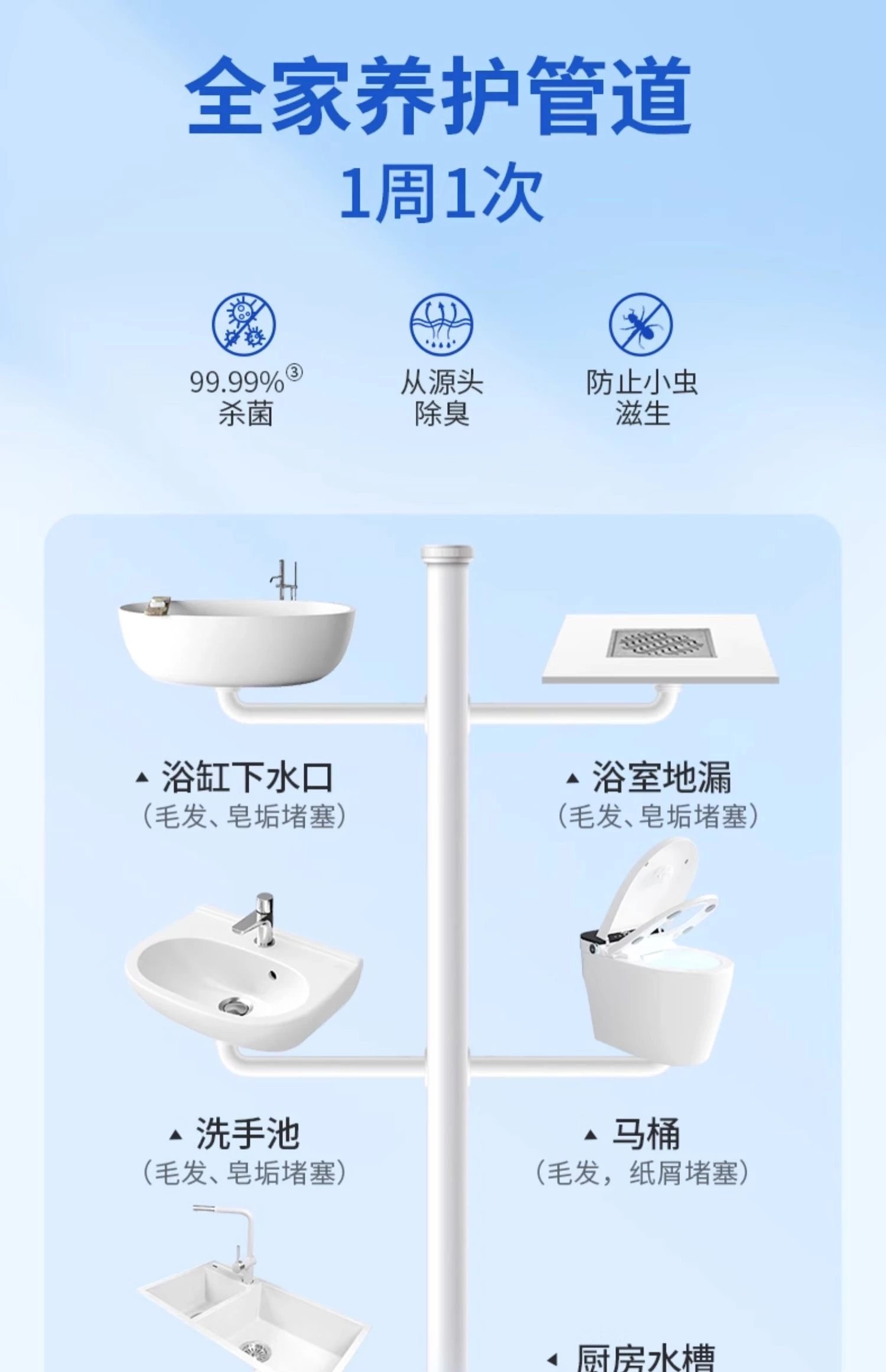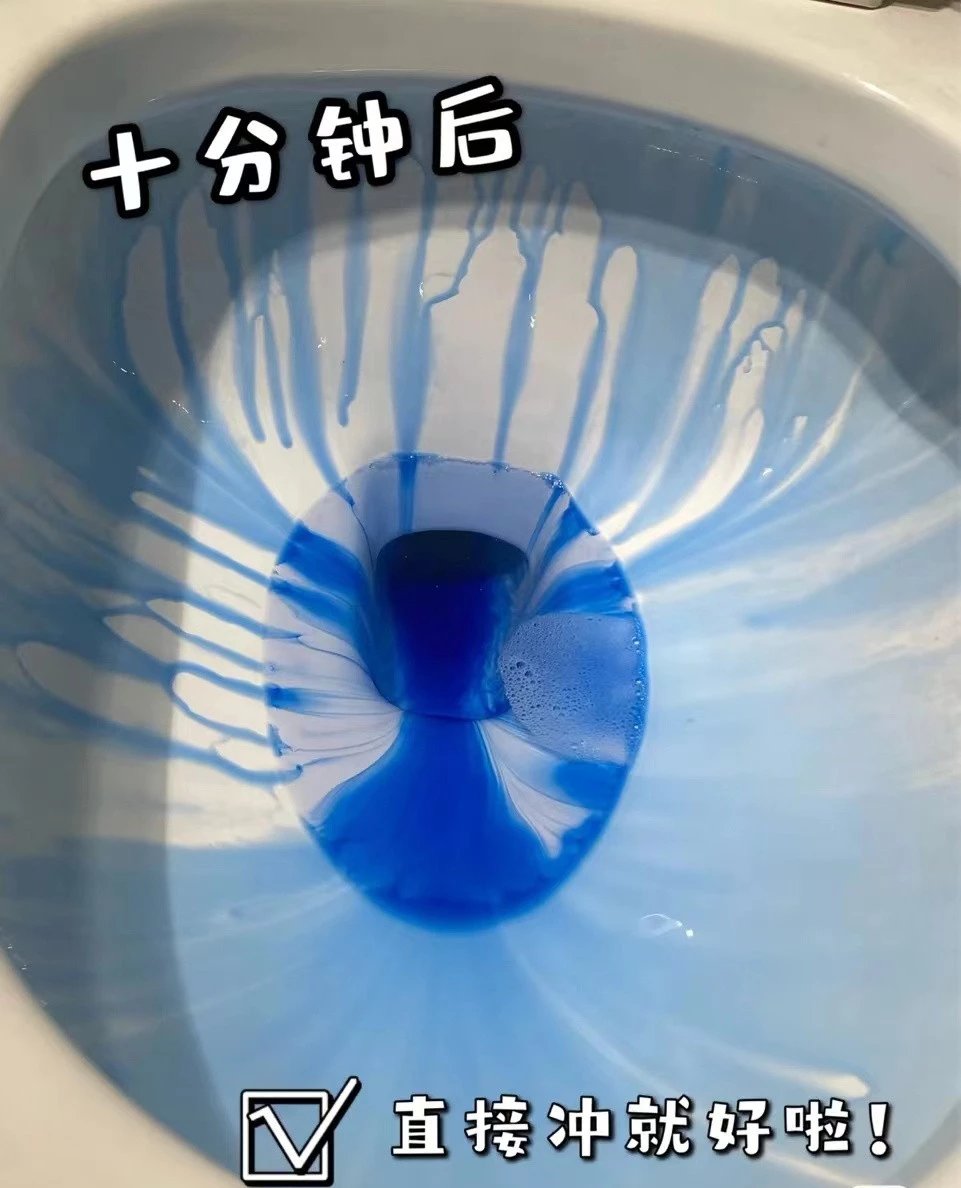 下沉力强,能够穿过水面,直接下沉到马桶底部,而非浮在水面上,反水弯的里边都能覆盖到