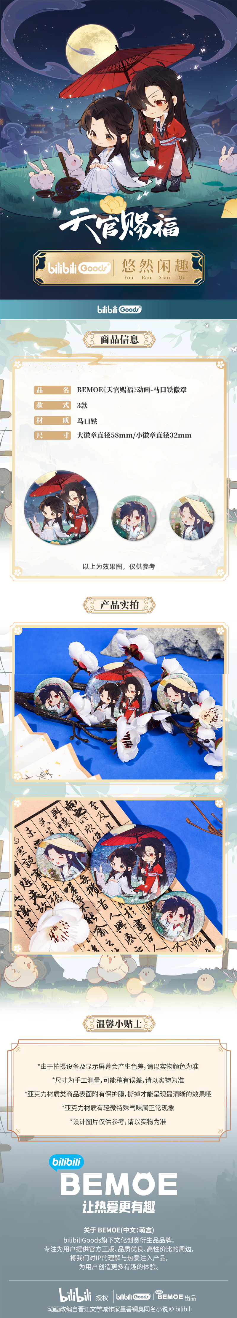 BEMOE 天官赐福 悠然闲趣系列 Q版马口铁徽章组合 吧唧 国谷 耽美