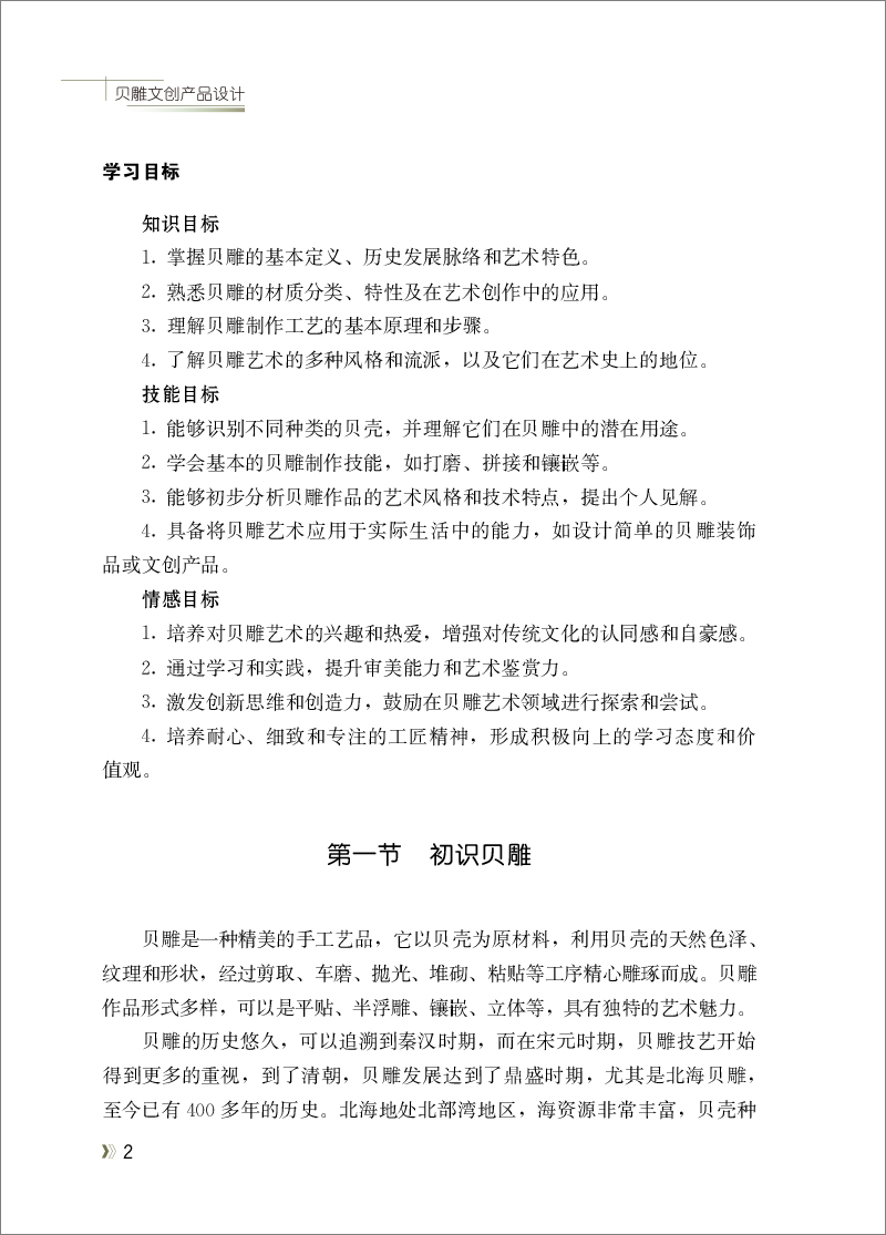 通 过 学 习 本 教 材 , 学 生 能 深 入 了 解 贝 雕 的 起 源 、 发 展 及 其 在 中 国 文