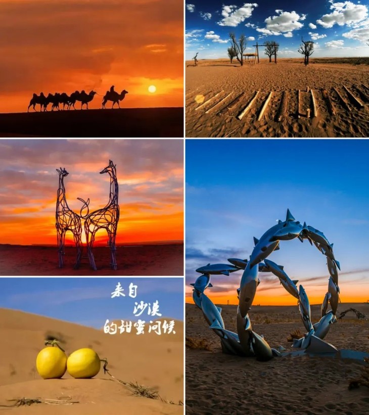 SUMMER民勤位于巴丹吉林沙漠和腾格里沙漠交汇的地方,这里三面环沙,民勤县通过工程固沙、人工种草、植树造林等方式,对沙漠化进行综合治理。以顽强的生命力守护着这片绿洲,阻挡了巴丹吉林沙漠和腾格里沙漠的合拢,被誉为"沙漠明珠"。我们去参观治沙点,感受从“沙进人退”到“沙退绿进”的生态实践,理解环境保护的重要性。
