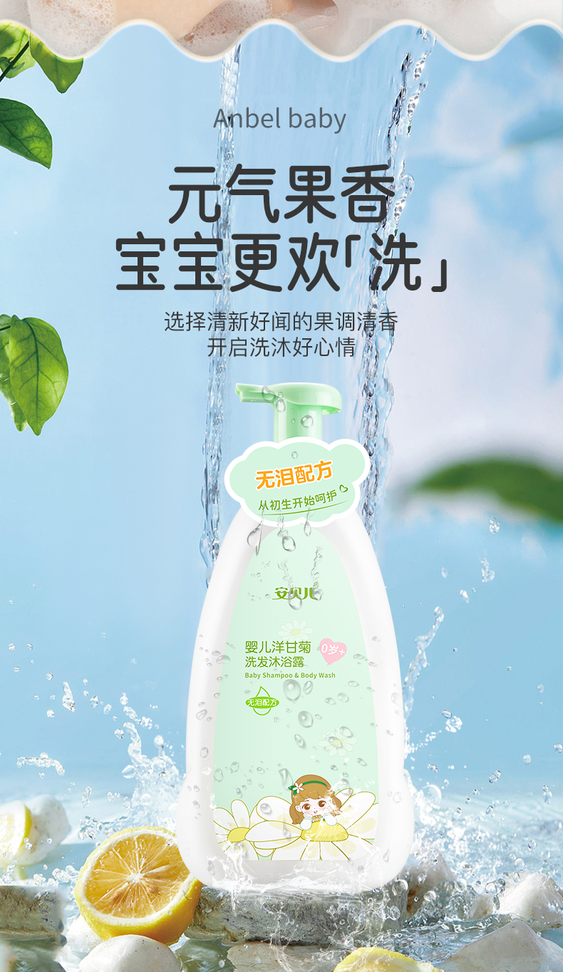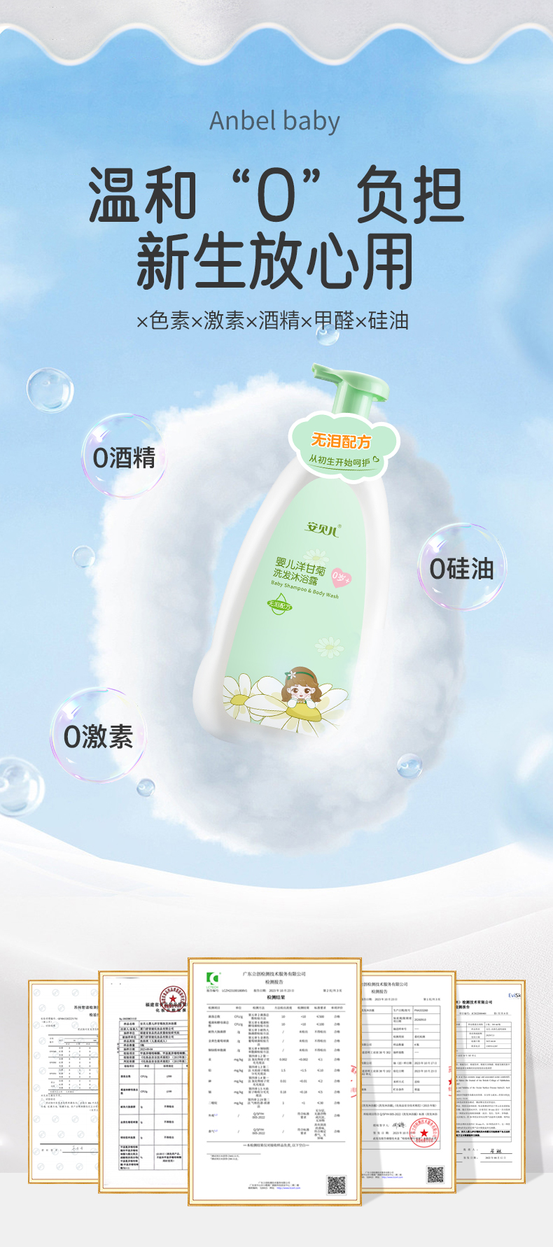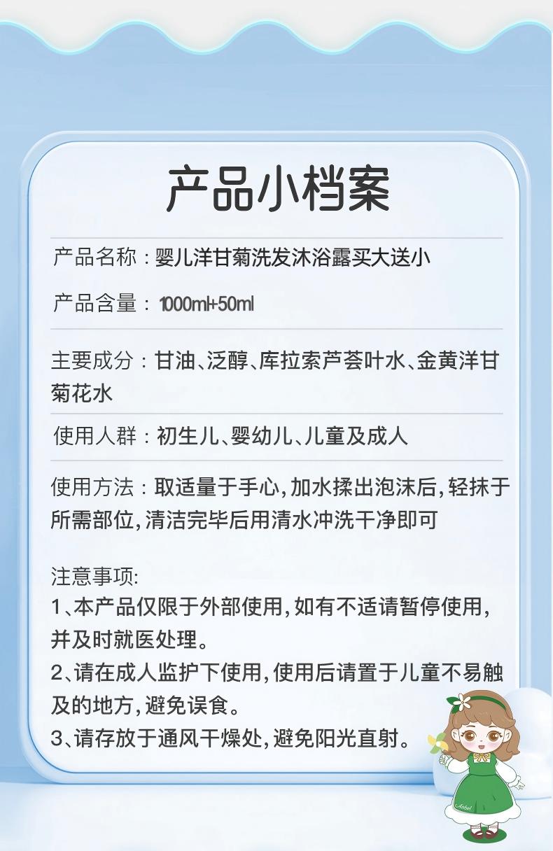 安贝儿 婴儿洋甘菊纯露洗发沐浴露大瓶送小瓶1000ml+50ml
