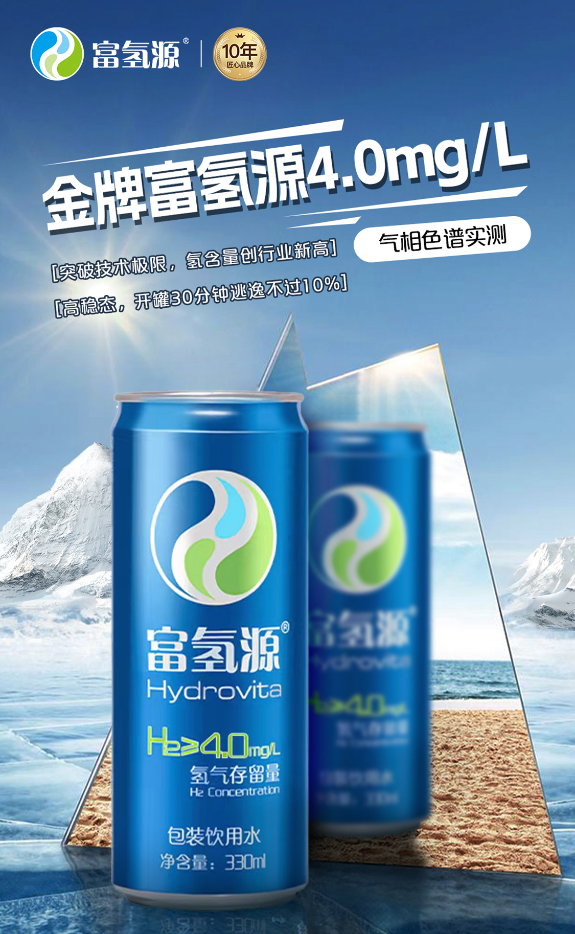 富氢源 4箱 96瓶 富氢水氢气含量4.0mg/L饱和氢气水 水素水 胡大一