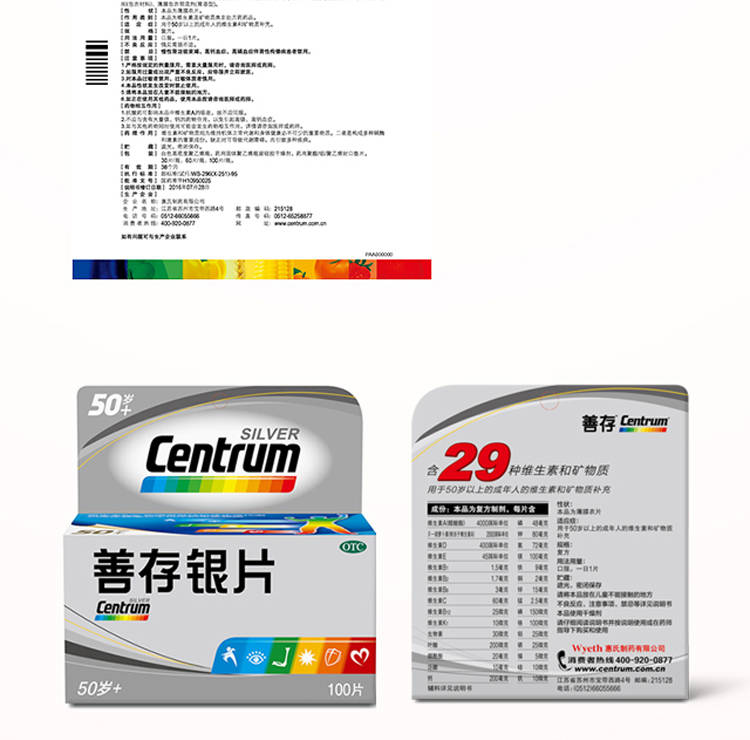 正品】银善存多维元素片(29-II)100片 50岁以上补维生素矿物质