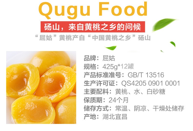 【宜昌助农馆】屈姑黄桃罐头 425g*4罐