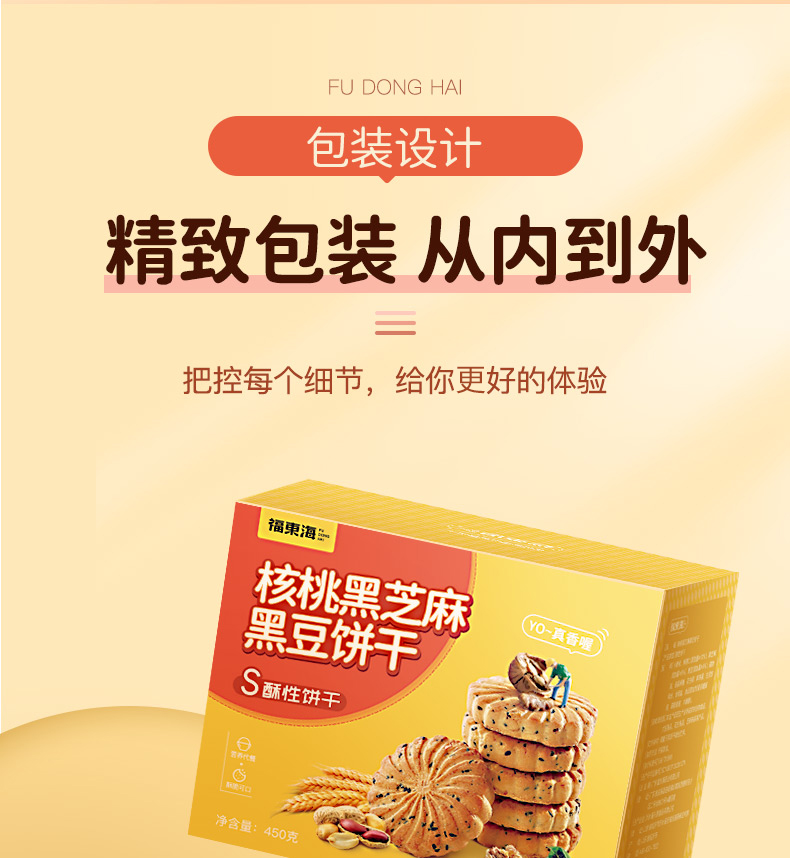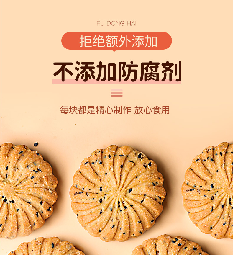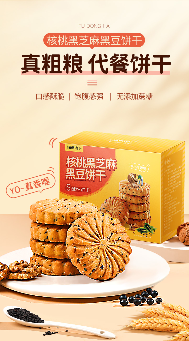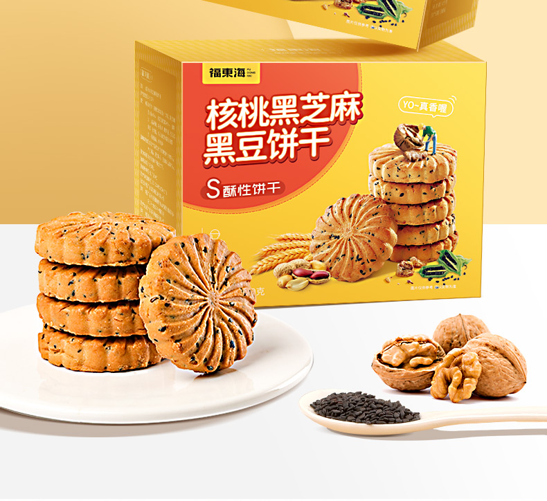 福东海 核桃黑芝麻黑豆饼干孕妇零食黑芝麻片无添加蔗糖色素食品450克/盒