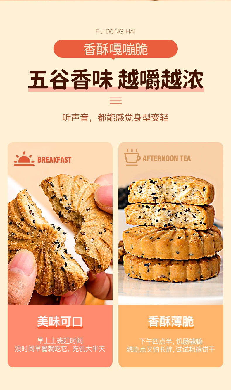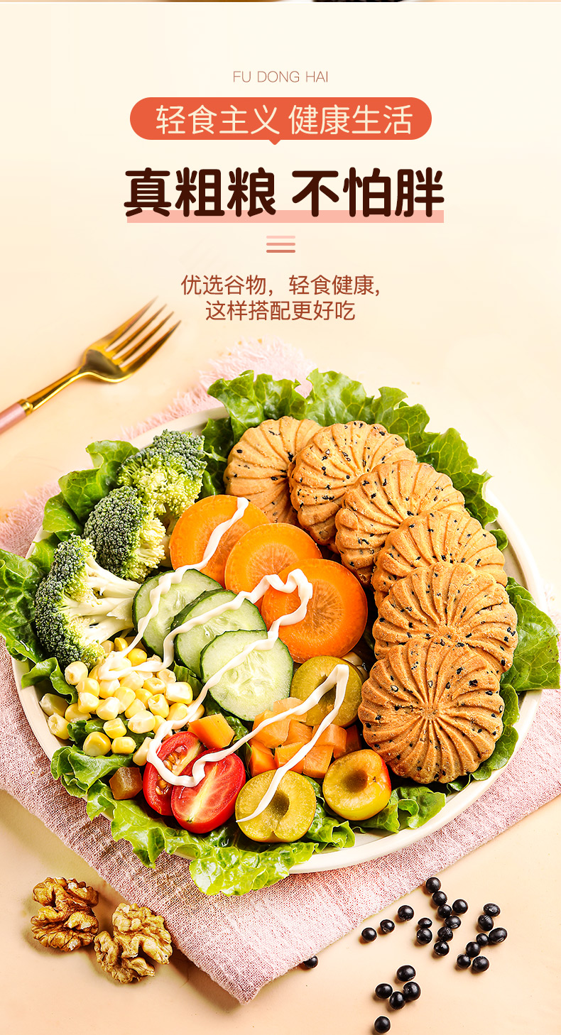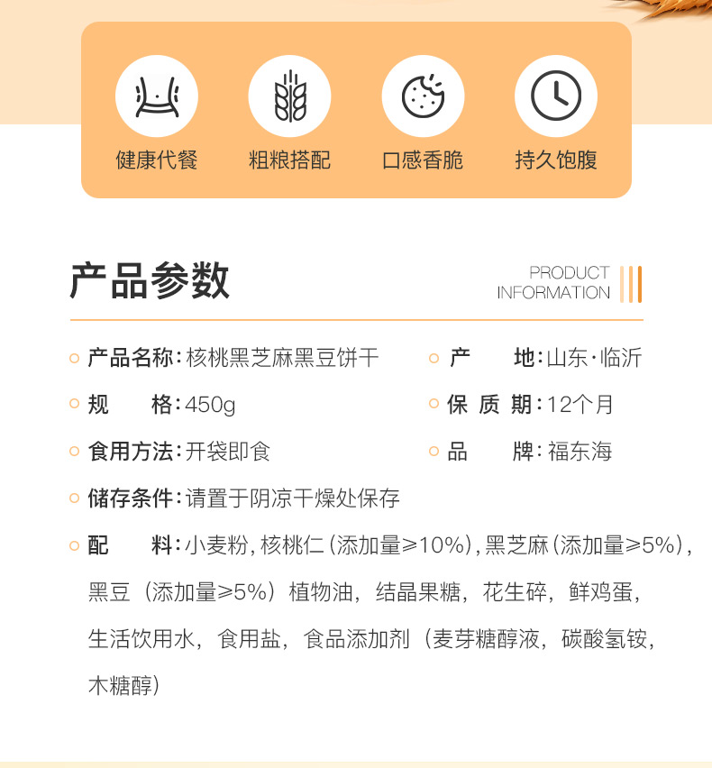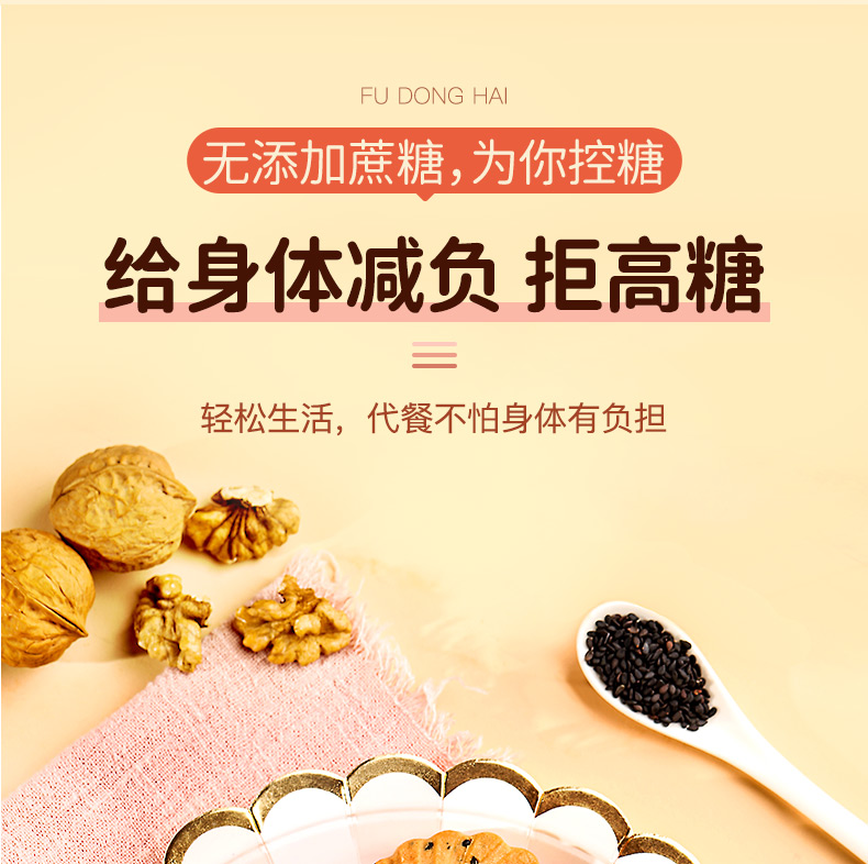 福东海 核桃黑芝麻黑豆饼干孕妇零食黑芝麻片无添加蔗糖色素食品450克/盒