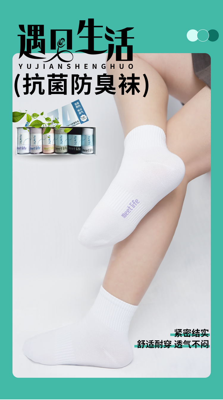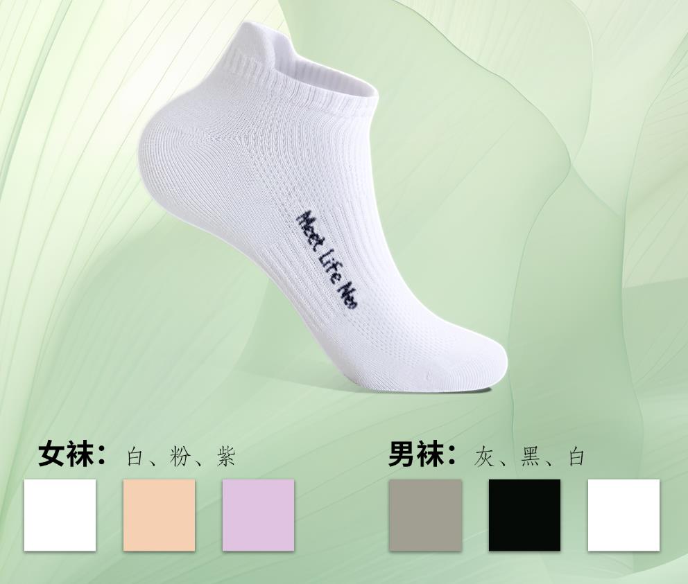 7A抗菌除臭短袜 (5月20号发货):男款净重140g,颜色黑/白/灰;女款净重135g,颜色白/粉/紫;6双一盒,每双独立袋装。