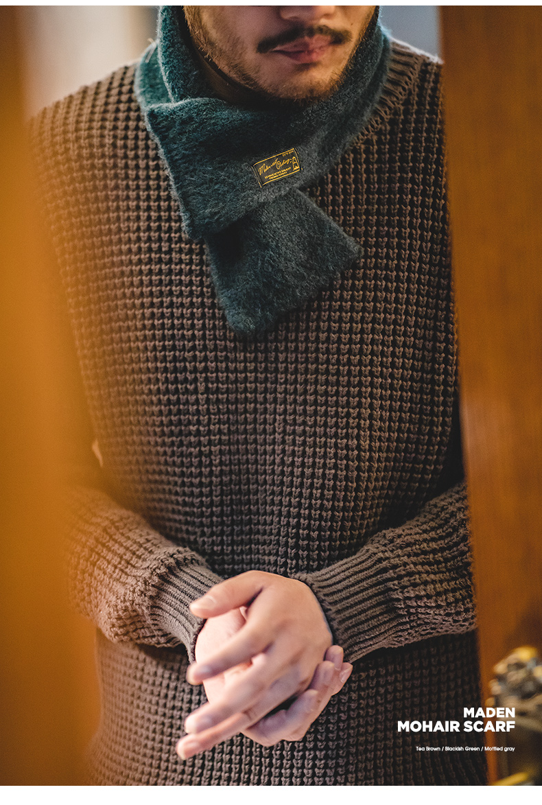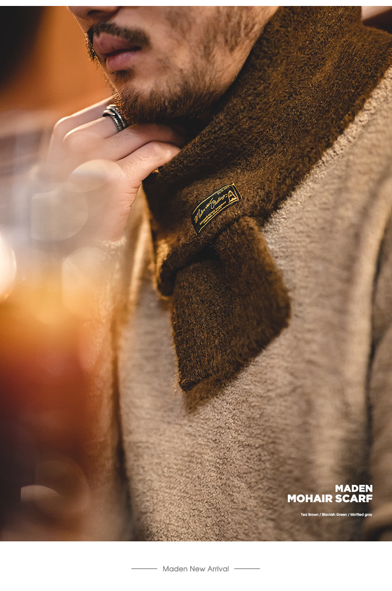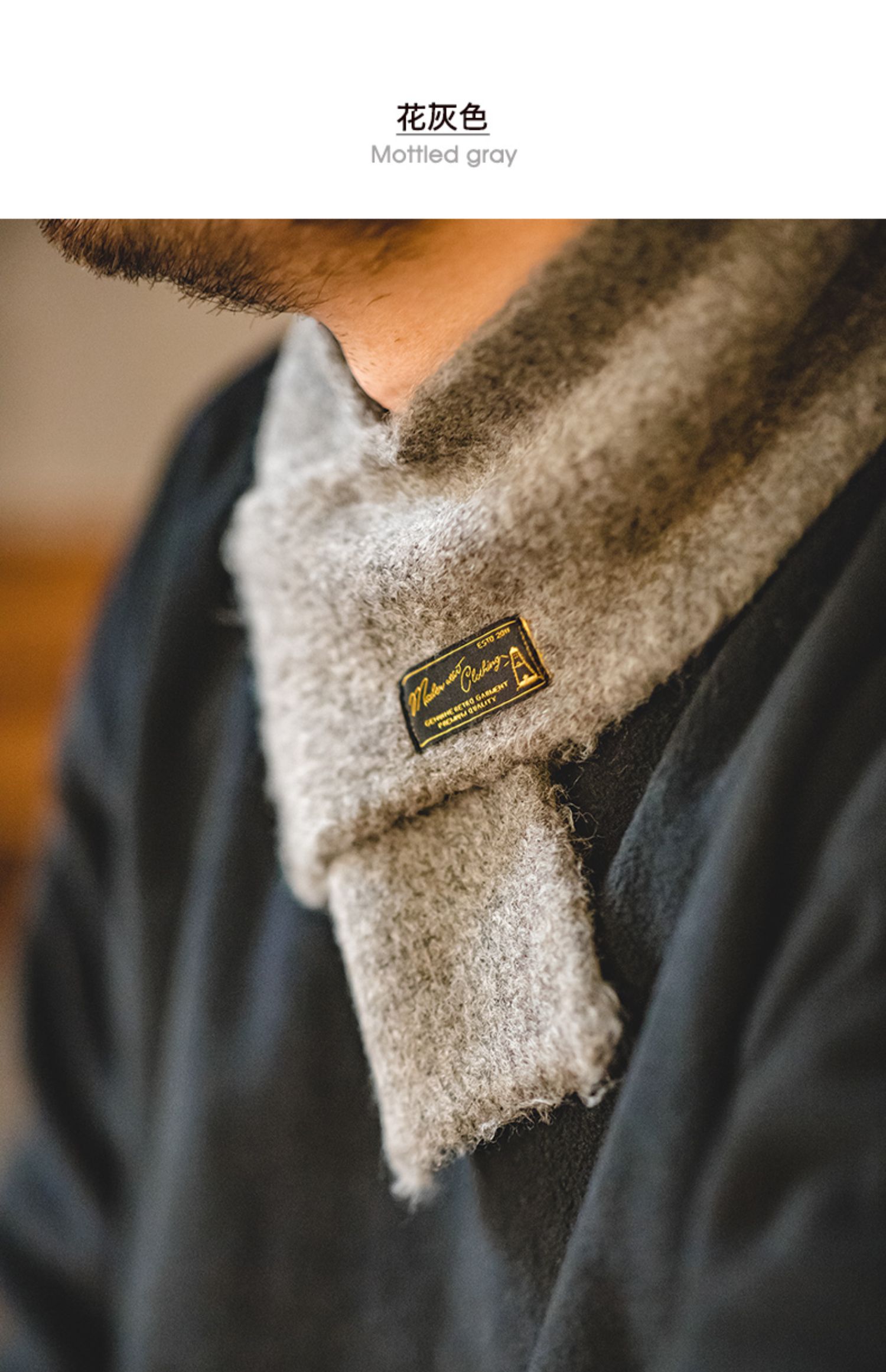 马登工装美式复古仿马海毛针织小围巾防风保暖毛线围脖秋冬季男女