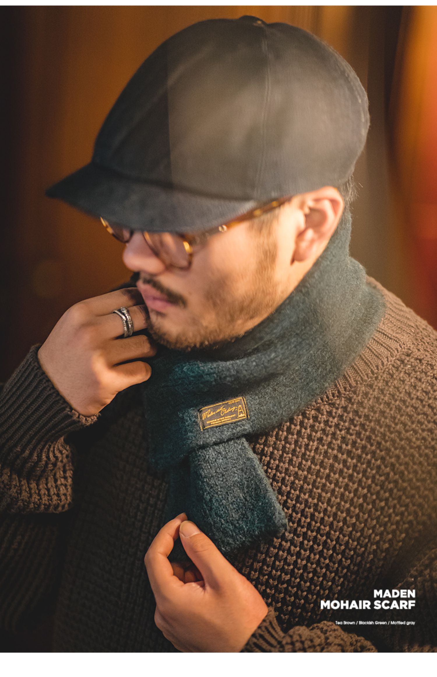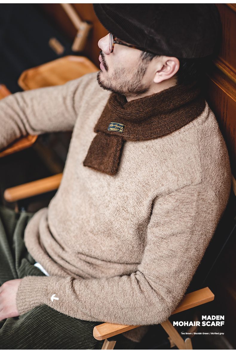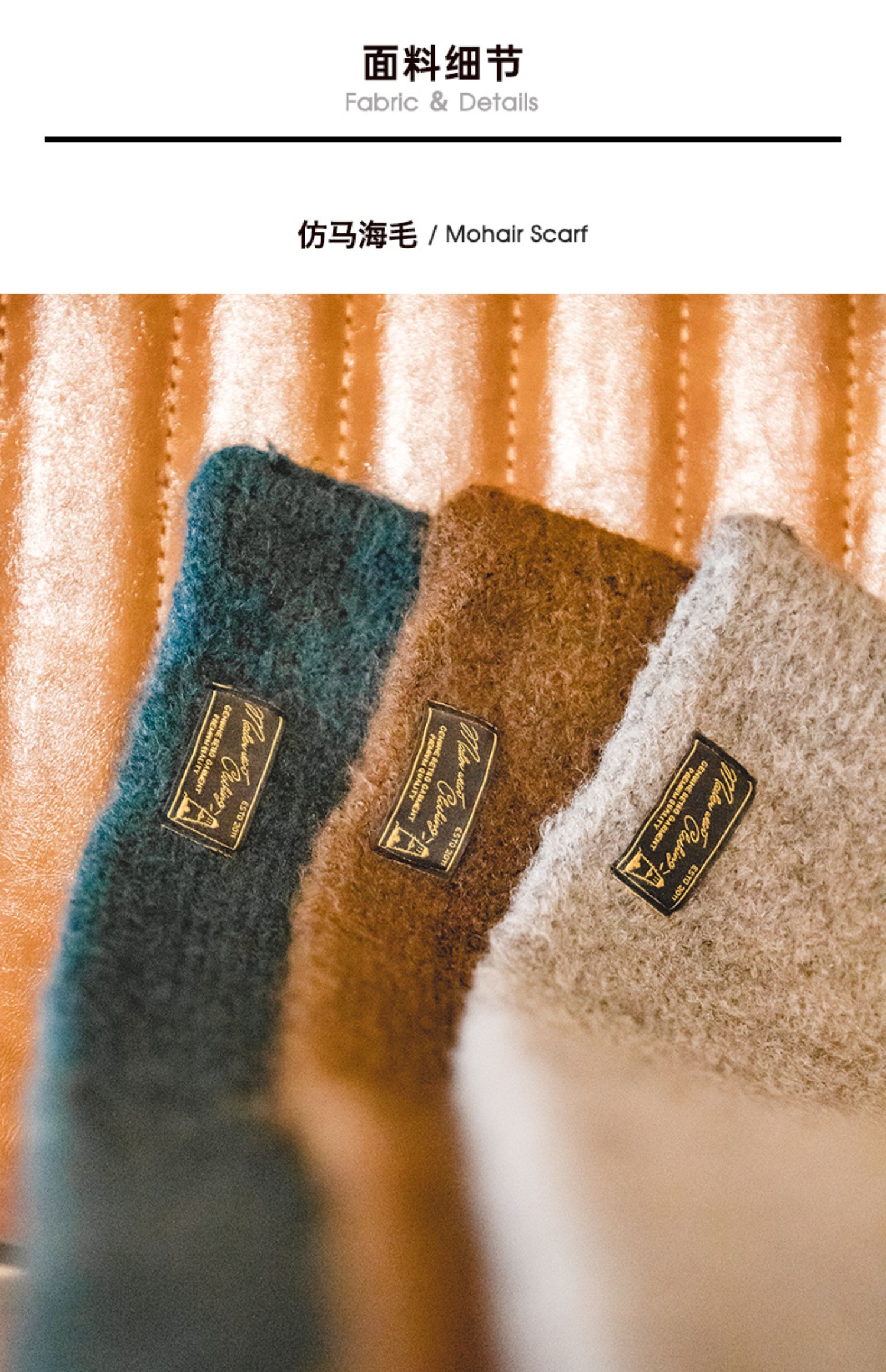 马登工装美式复古仿马海毛针织小围巾防风保暖毛线围脖秋冬季男女