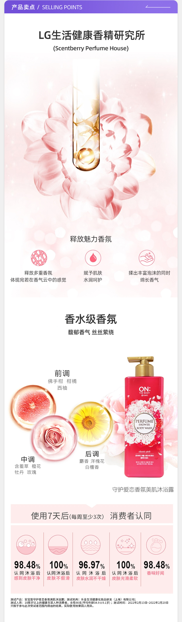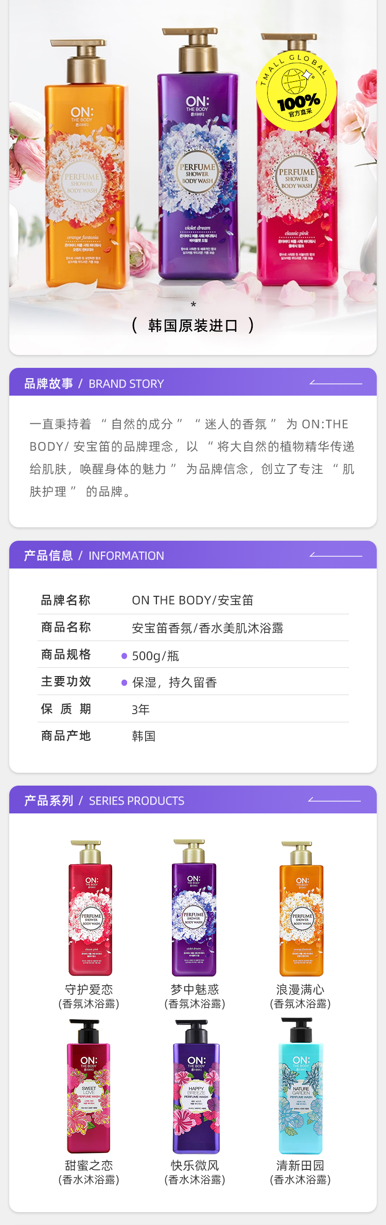 【积分兑换】ONTHEBODY/安宝笛韩国进口LG旗下品牌安宝笛香水/香氛沐浴露500ml*2