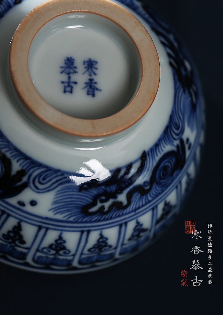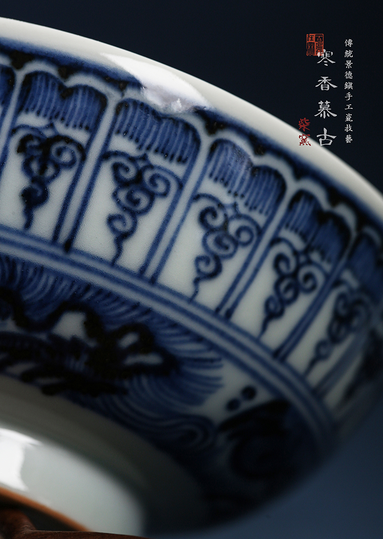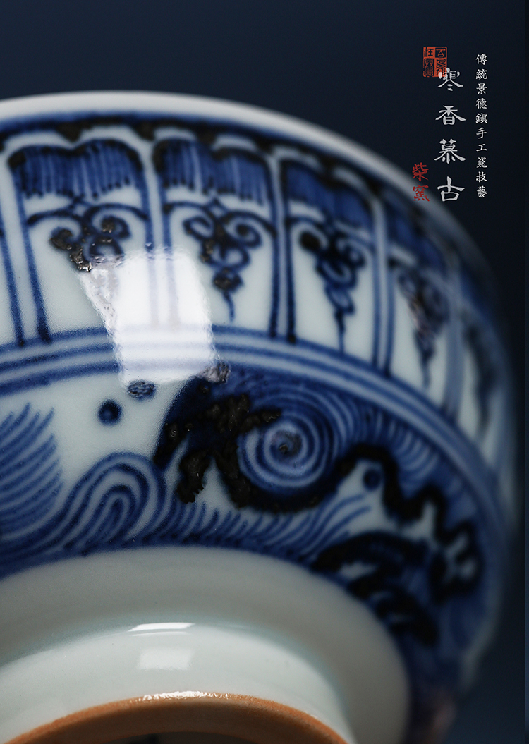寒香慕古元青花莲瓣纹杯(缺货)