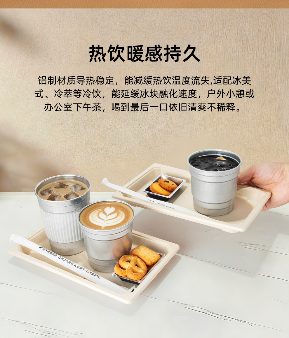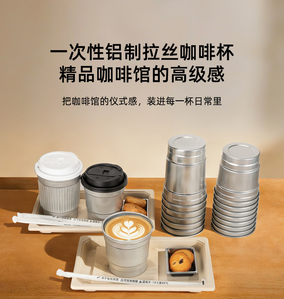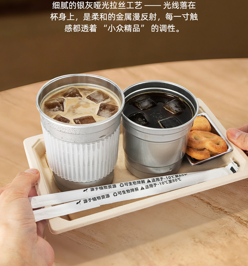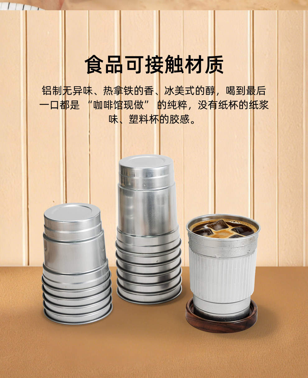 喇叭花350ml网红一次性咖啡铝杯银色奶茶杯打包杯子可定制铝制杯