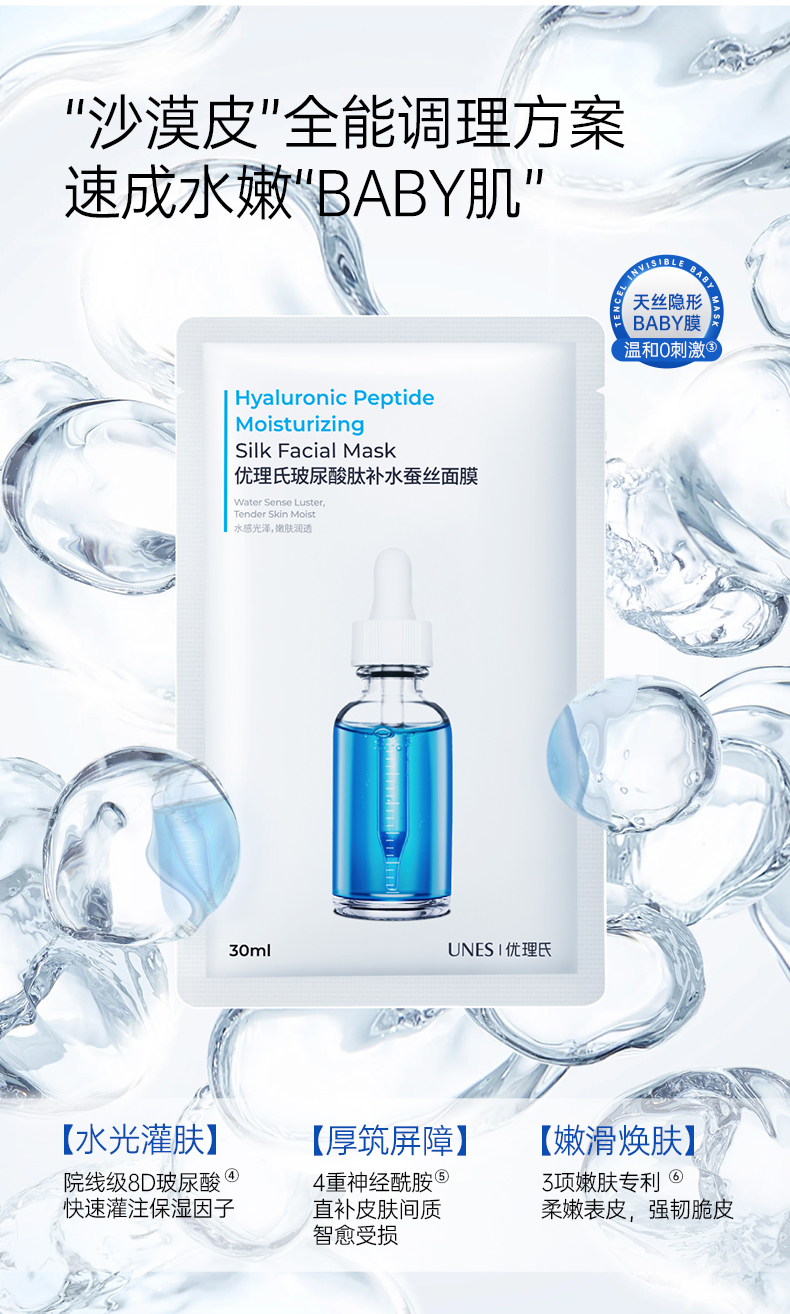 【补水小水库】玻尿酸肽补水蚕丝面膜 补水保湿清洁毛孔控油滋润舒缓修护