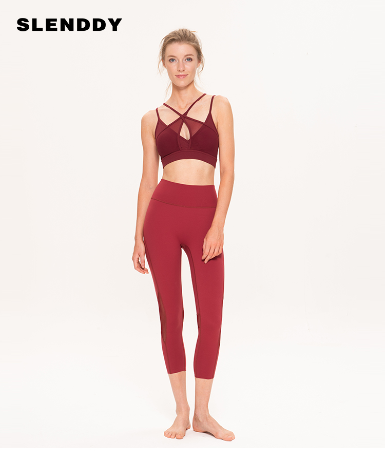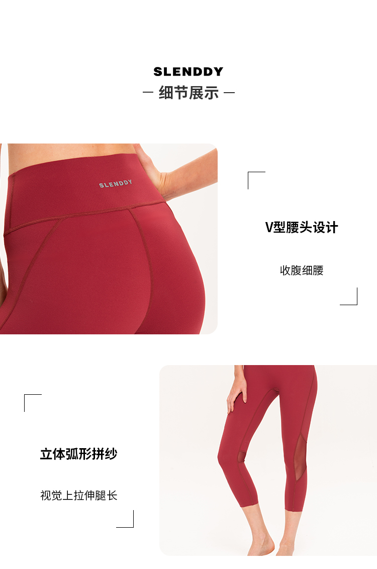 slenddy Animate高腰网纱女拼接七分瑜伽裤健身提臀运动裤S6102
