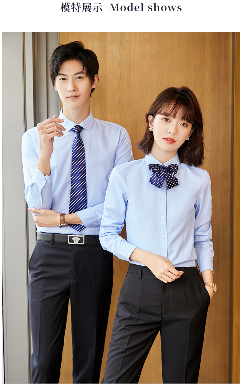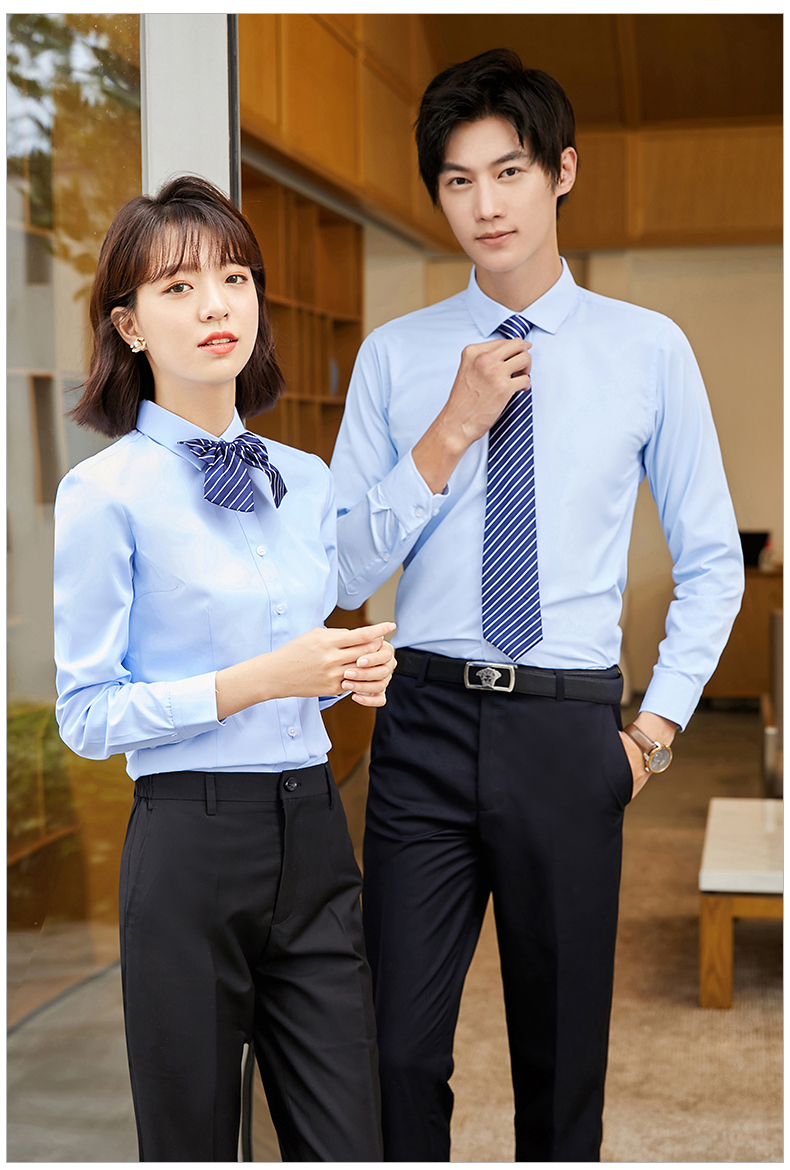 夏季衬衫长袖职业装男女工作服衬衣定制绣字印LOGO职工工装上衣