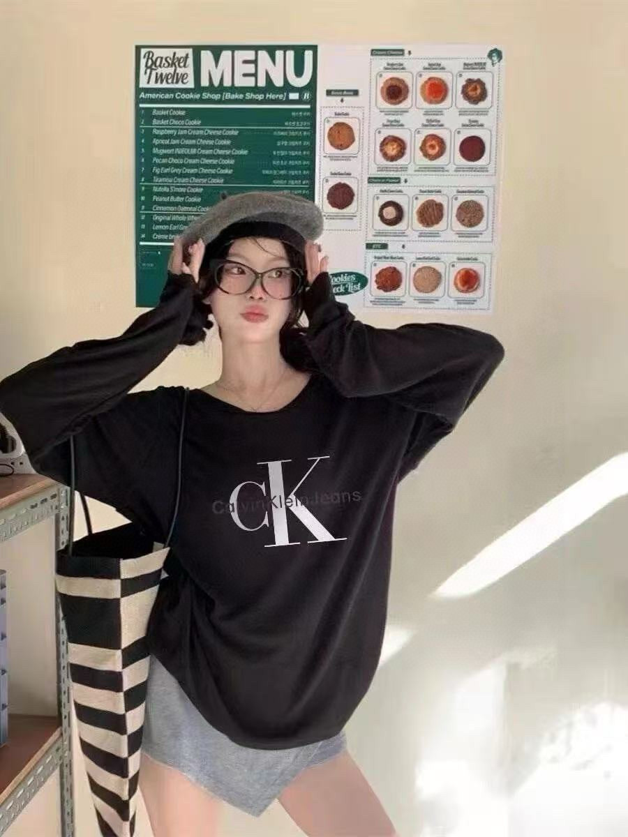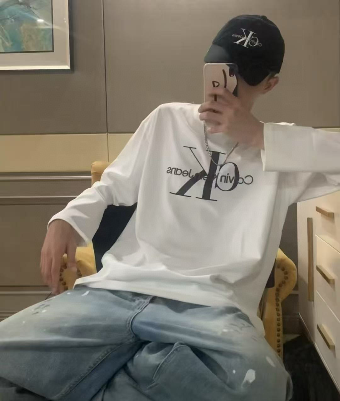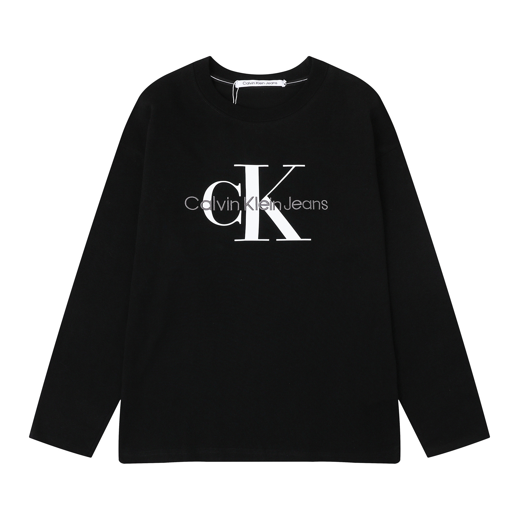 Calvin Klein CK 经典标准字母刺绣+印花logo情侣圆领长袖T恤-原版代购品质