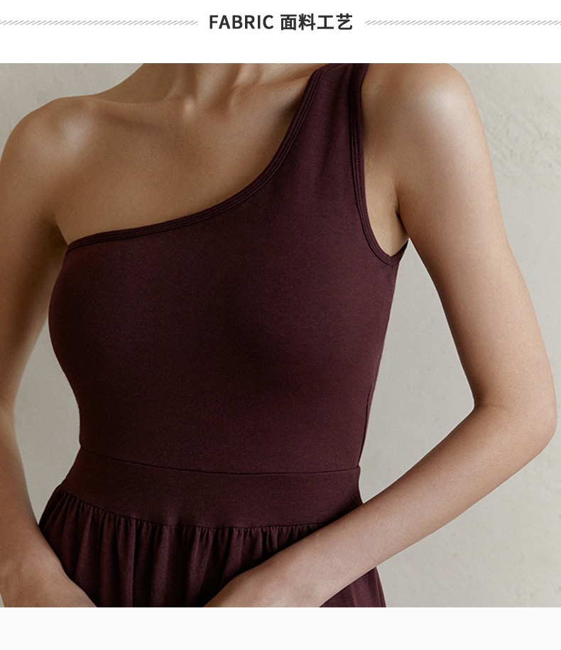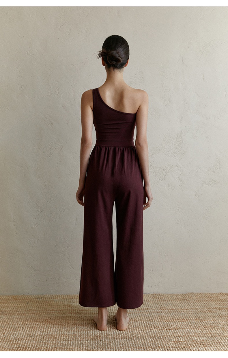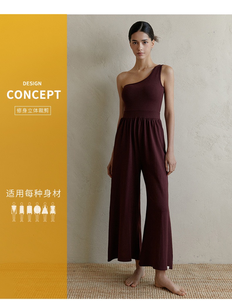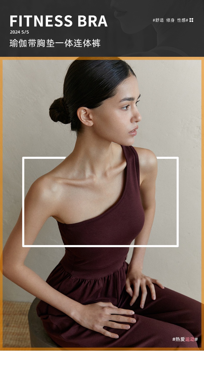 新款禅意斜肩背心式阔腿连体瑜伽服 透气自带胸垫普拉提套装 FY LN57