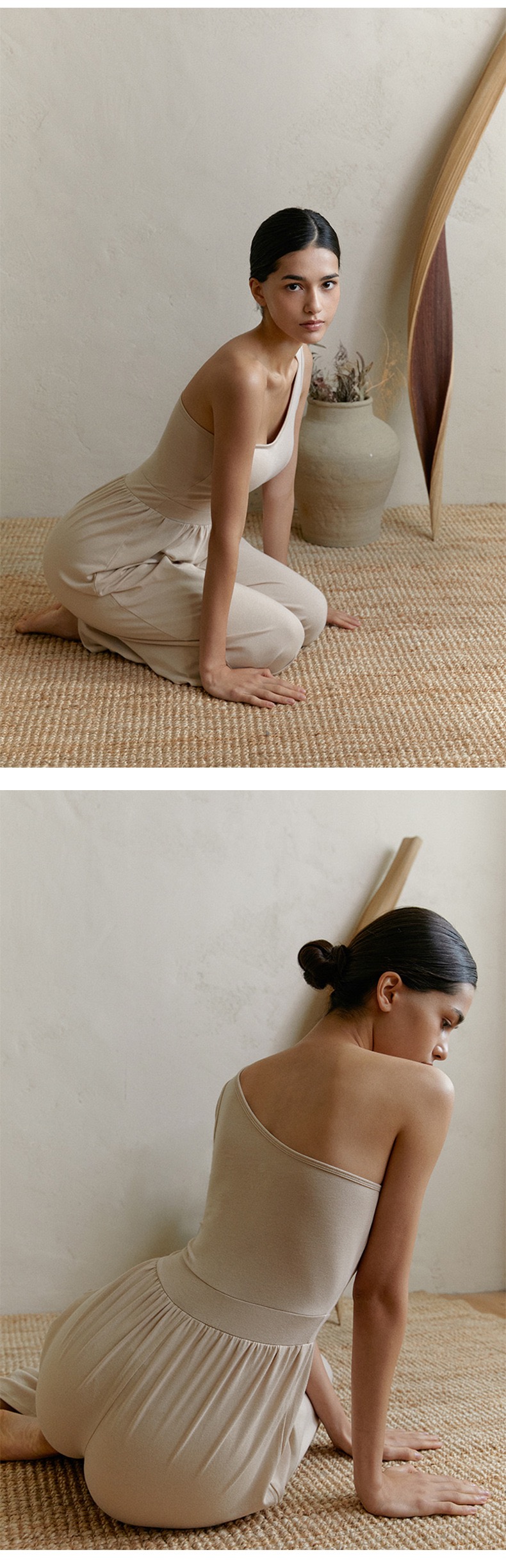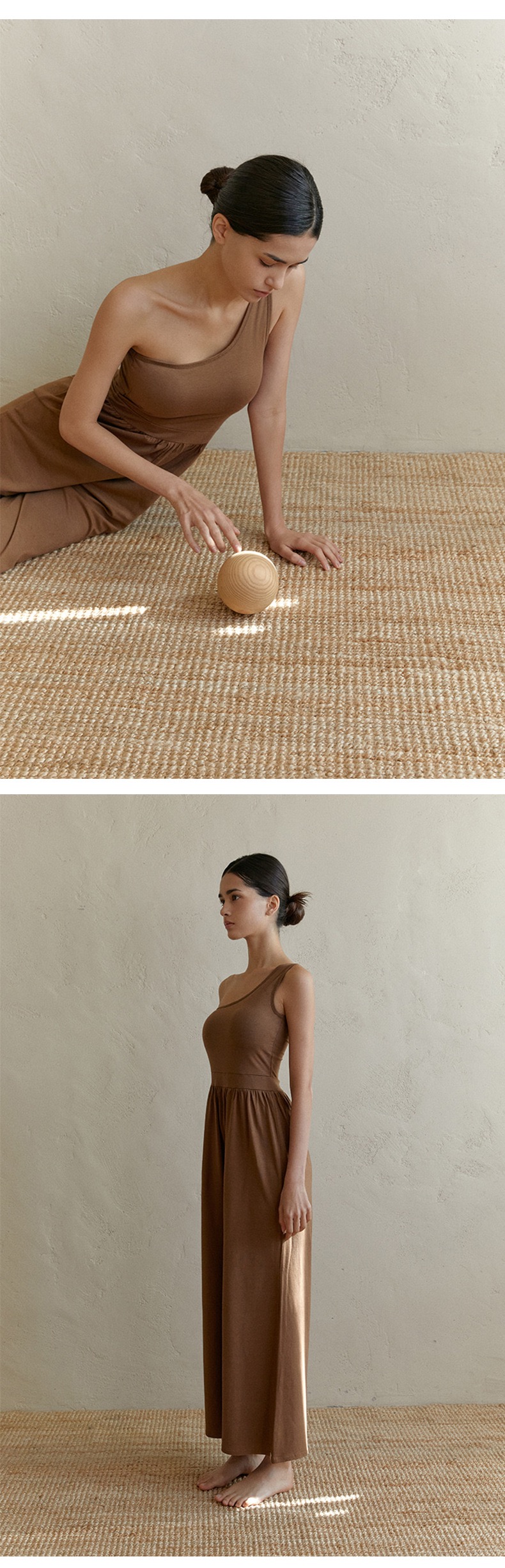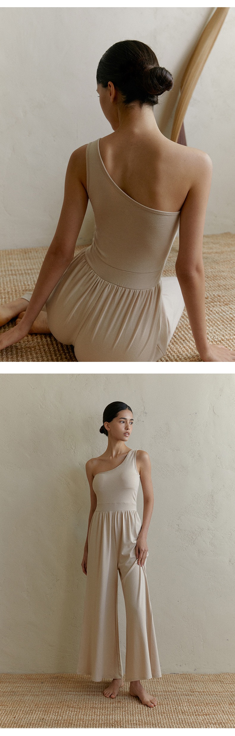 新款禅意斜肩背心式阔腿连体瑜伽服 透气自带胸垫普拉提套装 FY LN57